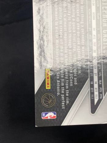 1.卡品如图所见即所得,如有瑕疵会进行图片上传,拍卡时请注意看图。所有卡片均不保卡品,optic、马赛克、prizm、select等系列卡片出现生产线及弯曲的情况属于正常一般通行品,Noir国宝IMM小真金老卡等系列厚卡,有白边白角属于正常卡品,镜面、铁板卡签有小划痕属于正常通行品相,评级卡砖上的划痕和破损不属于品相问题,任何砖壳划痕不接受维权退款,折射系列不保证金标,要评级追求金标者请直接购买金标。如还需卡片其他细节图,还请请站内信联系。拍下即认可卡品,不退!介意勿拍。拍卖截标后不议价!