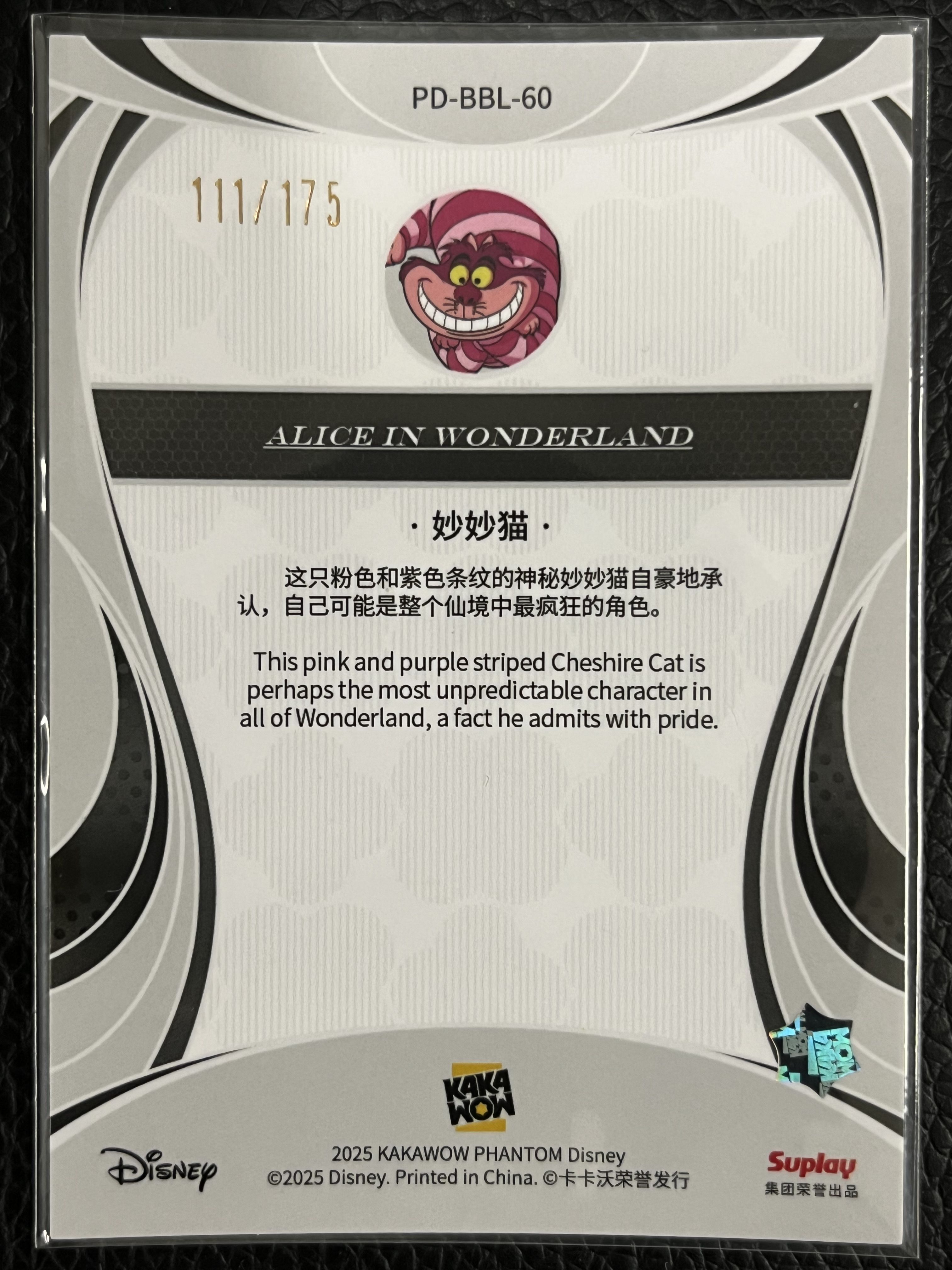 卡卡沃 2025 KAKAWOW PHANTOM 迪士尼系列收藏卡 基础卡-蓝 西GXX(11A)111/175编 卡号60 妙妙猫 The Cheshire Cat