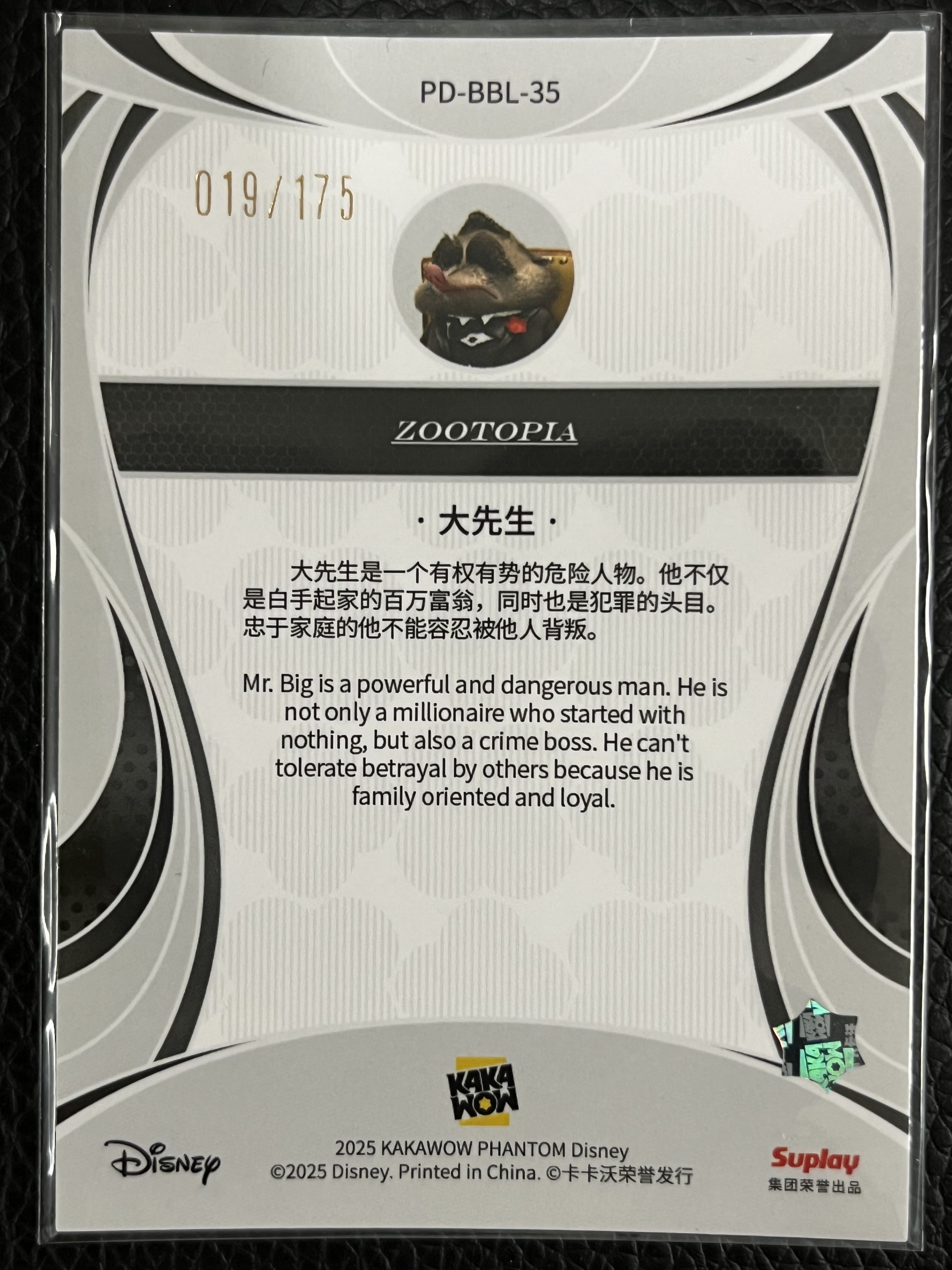 卡卡沃 2025 KAKAWOW PHANTOM 迪士尼系列收藏卡 基础卡-蓝 西GXX(11A)19/175编 卡号35 大先生 Mr.Big