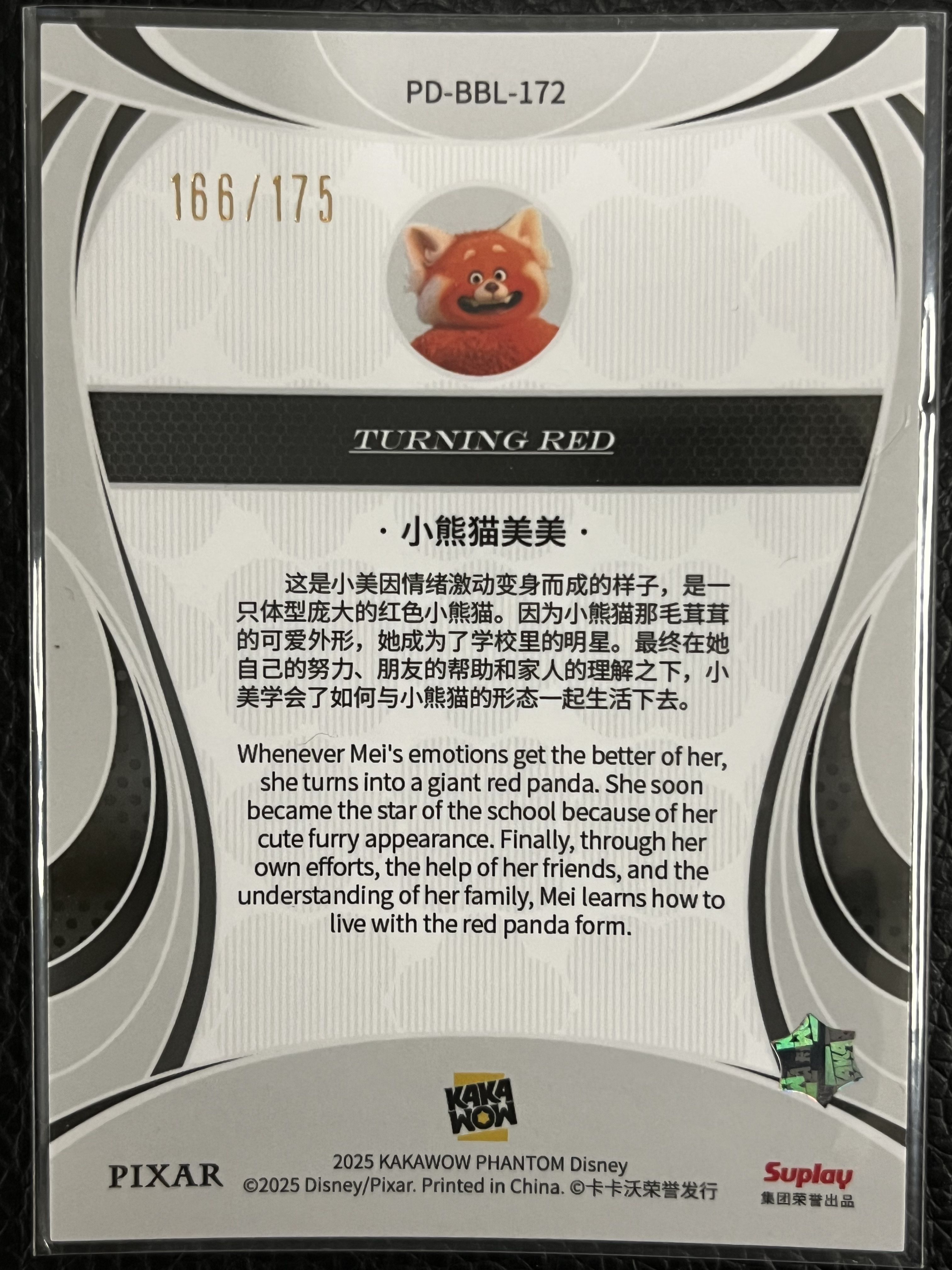 卡卡沃 2025 KAKAWOW PHANTOM 迪士尼系列收藏卡 基础卡-蓝 西GXX(11A)166/175编 卡号172 小熊猫美美 Red Panda Mei