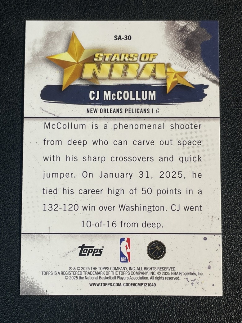 2025 Topps NBA Flagship CJ McCollum 905 CJ 麦科勒姆 鹈鹕 Stars of the NBA NBA之星特卡 折射 紫折 250编 微瑕如图 pink