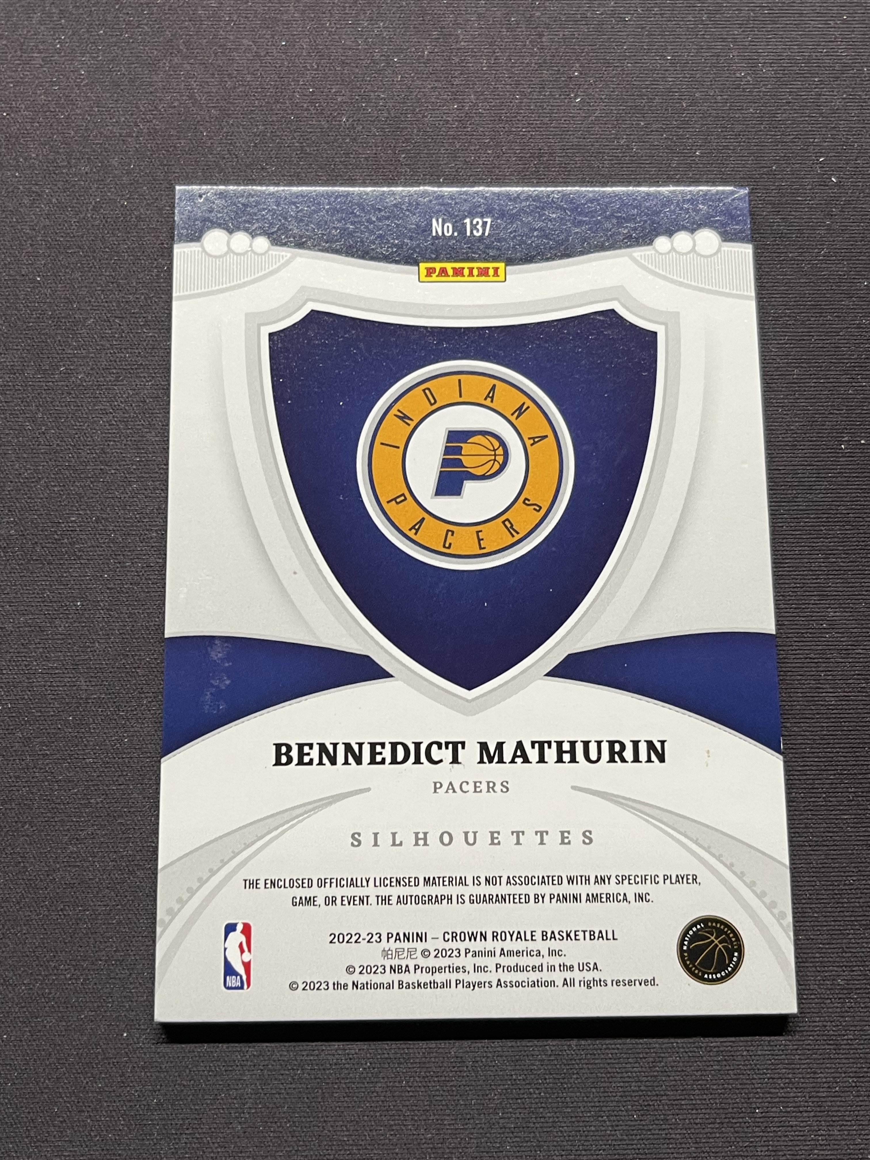 2022-23 Panini Crown Royale Bennedict Mathurin RC 皇冠 步行者 马图林 马瑟林 新秀 剪影 球衣 签字卡签 147/199编「老夫子」Xashu