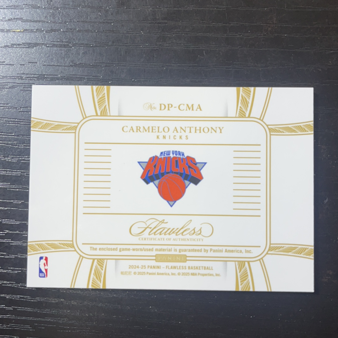 2024-25 Panini Flawless Carmelo Anthony 手提 尼克斯 甜瓜 卡梅隆 安东尼7 /10编 同背编 亲穿GU落场 双窗球衣 暴力切割 金平行版 等同1/1