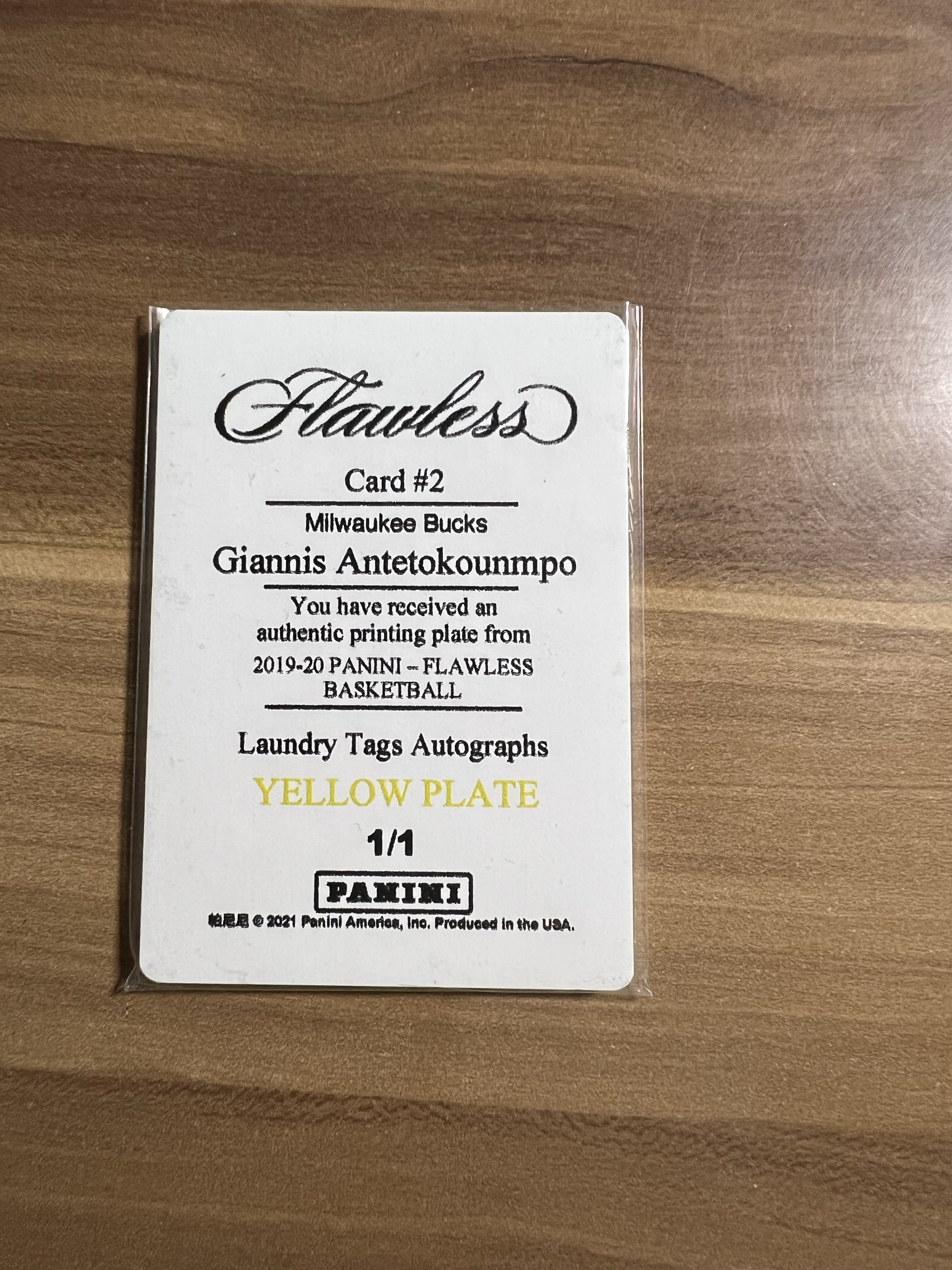 2019-20 Panini Flawless Giannis Antetokounmpo 雄鹿 字母哥 阿德托昆博 手提 模板 模板卡 1/1编1 laundry tags auto 签字模板