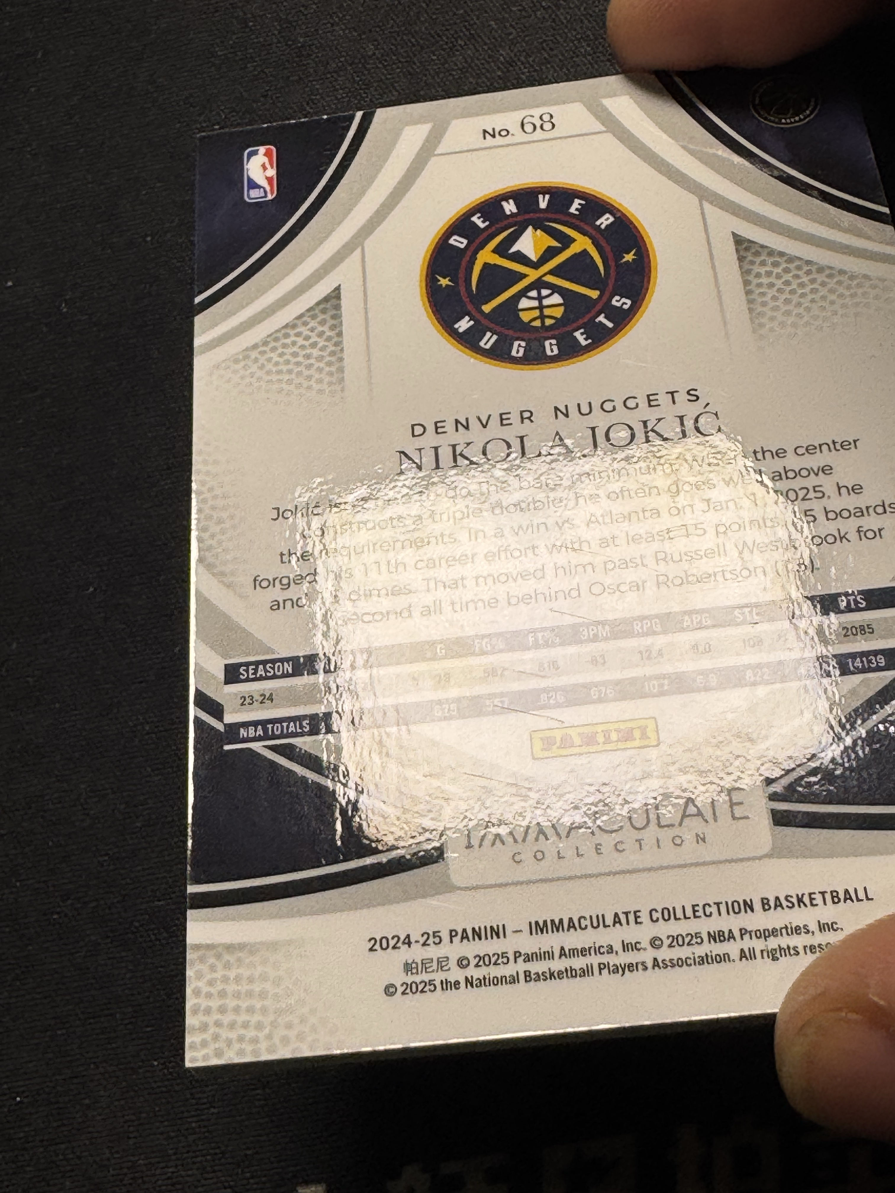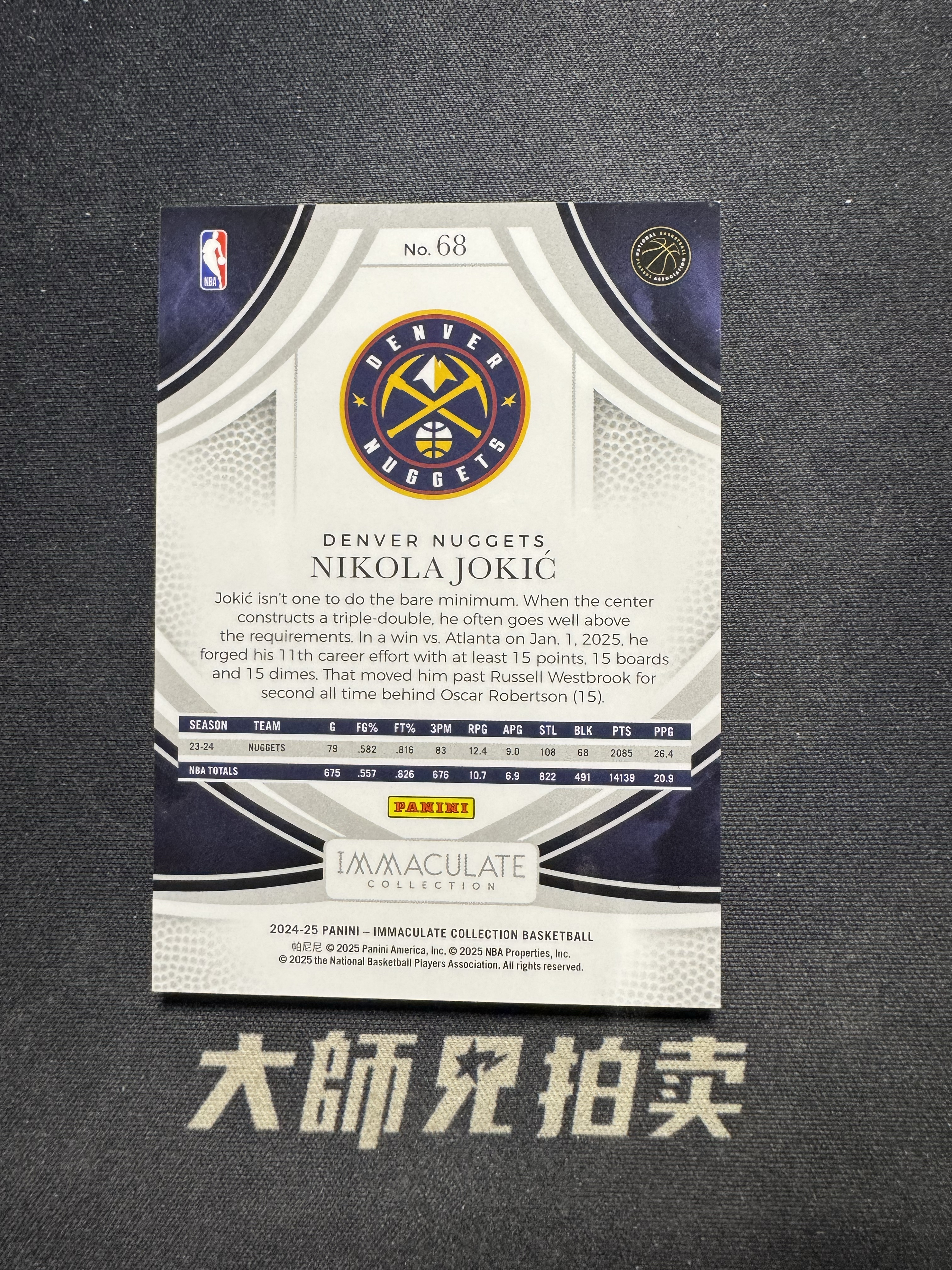 【大师兄拍卖】2024-25 Panini immaculate NIKOLA JOKIC 掘金 尼古拉 约基奇 /25编 蓝平行 base 瑕疵如图-Jas-