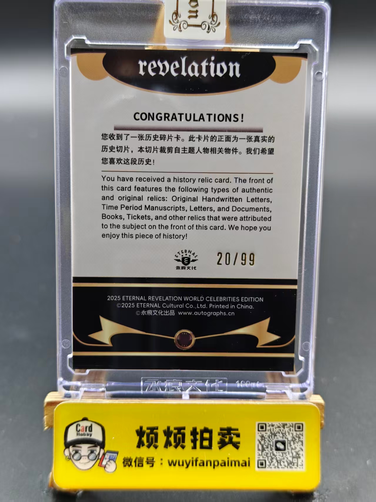 5.理赔:金额高的卡片建议保价,未保价的订单如出现丢件,快递赔偿的金额与商品金额的差额本店不承担。无论是否保价,快递造成的丢件或卡片损坏,本店会尽全力协助索赔,但不全权负责赔偿。包裹寄出后如需转寄请自行联系快递解决。收到货品【请录开箱视频】以供卡品纠纷时维权证明,如需【快递理赔请保留好快递包装】,且【在签收24小时内联系售后微信wuyifanpaimai协助赔偿】!超时申诉顺丰快递不予赔偿!没有证据或超时再联系我们将无法帮助和卖家或快递方申请理赔!