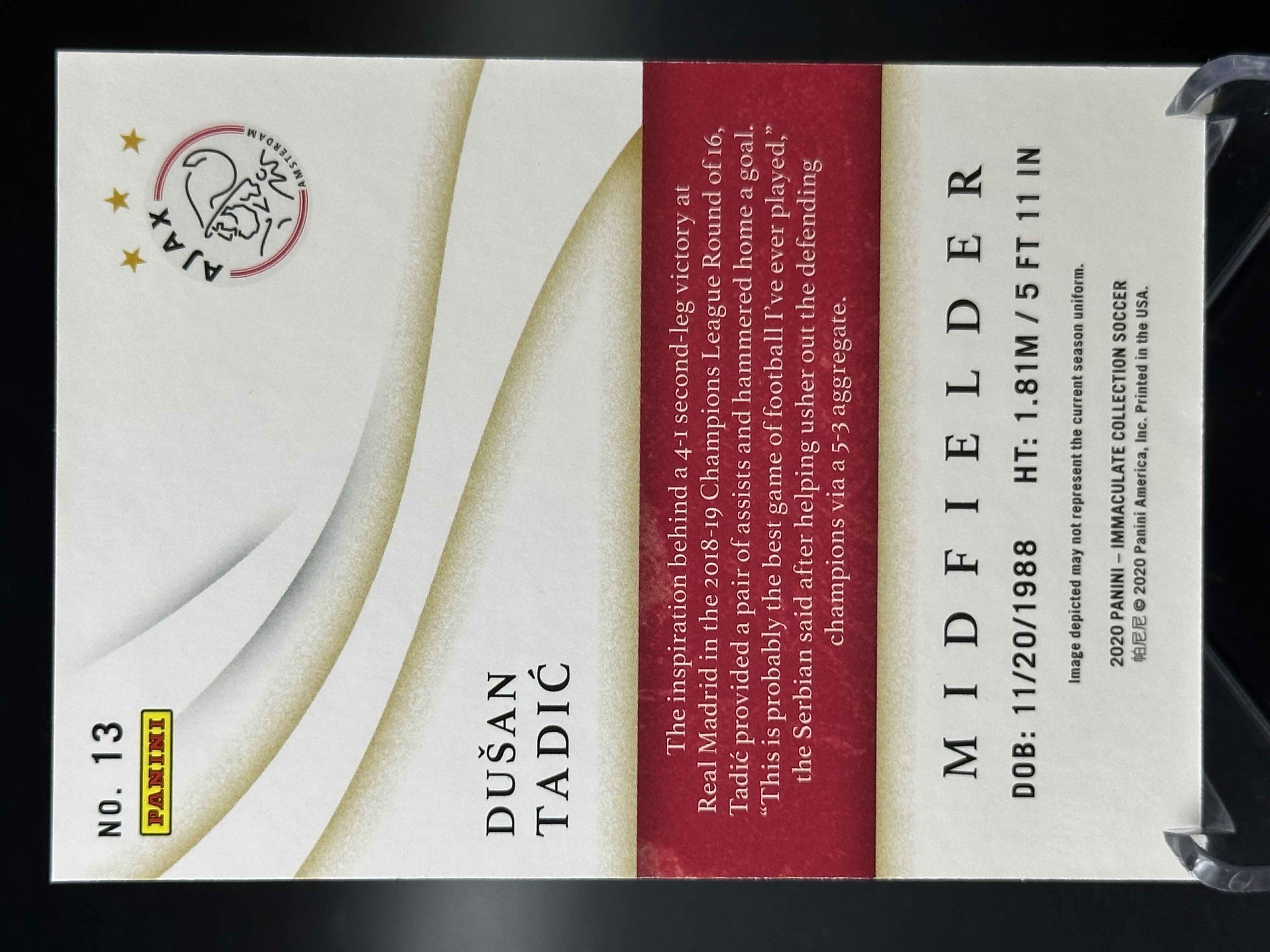 2020 Panini Immaculate Dusan Tadic 【小黄拍卖】IMM 塔迪奇 阿贾克斯 base 03/10编 超低编「cook」