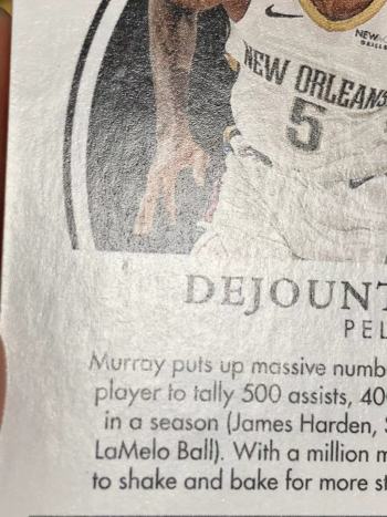 1.卡品如图所见即所得,如有瑕疵会进行图片上传,拍卡时请注意看图。所有卡片均不保卡品,optic、马赛克、prizm、select等系列卡片出现生产线及弯曲的情况属于正常一般通行品,Noir国宝IMM小真金老卡等系列厚卡,有白边白角属于正常卡品,镜面、铁板卡签有小划痕属于正常通行品相,评级卡砖上的划痕和破损不属于品相问题,任何砖壳划痕不接受维权退款,折射系列不保证金标,要评级追求金标者请直接购买金标。如还需卡片其他细节图,还请请站内信联系。拍下即认可卡品,不退!介意勿拍。拍卖截标后不议价!