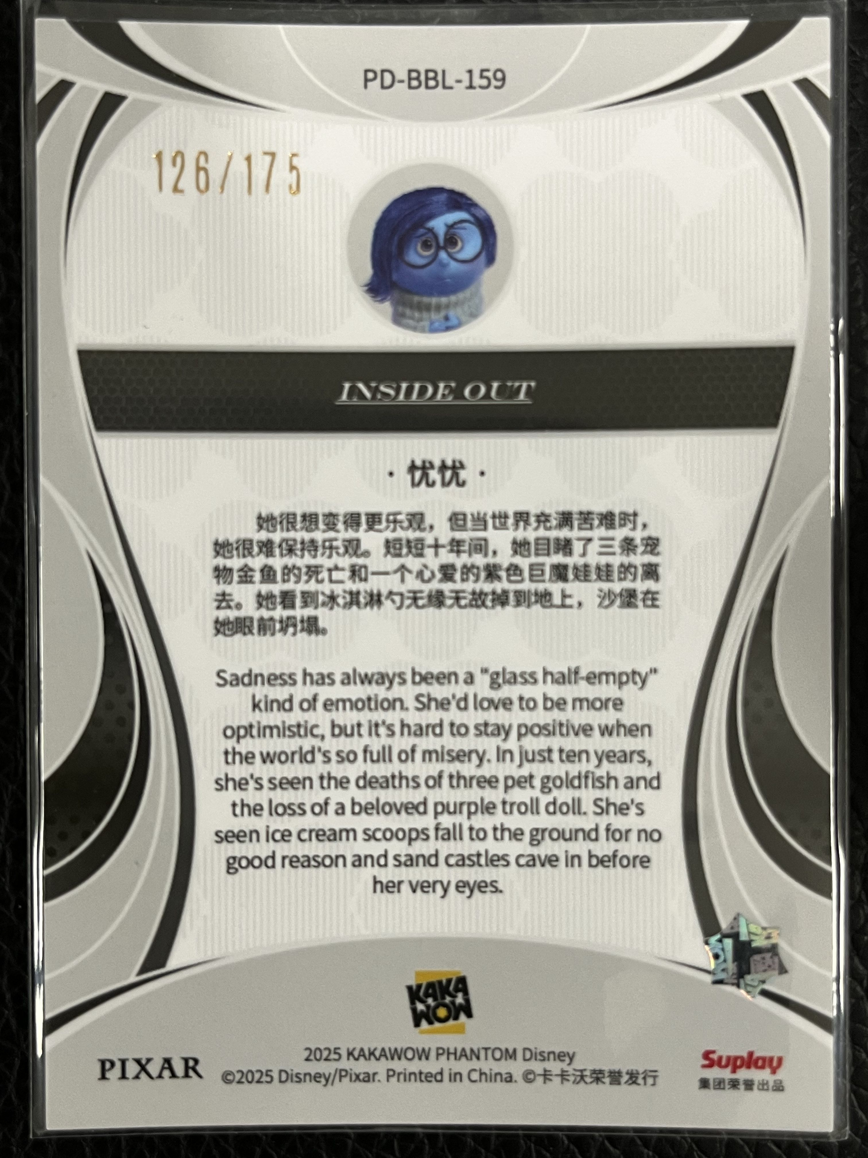卡卡沃 2025 KAKAWOW PHANTOM 迪士尼系列收藏卡 基础卡-蓝 西GXX(12A)126/175编 卡号159 忧忧 Sadness