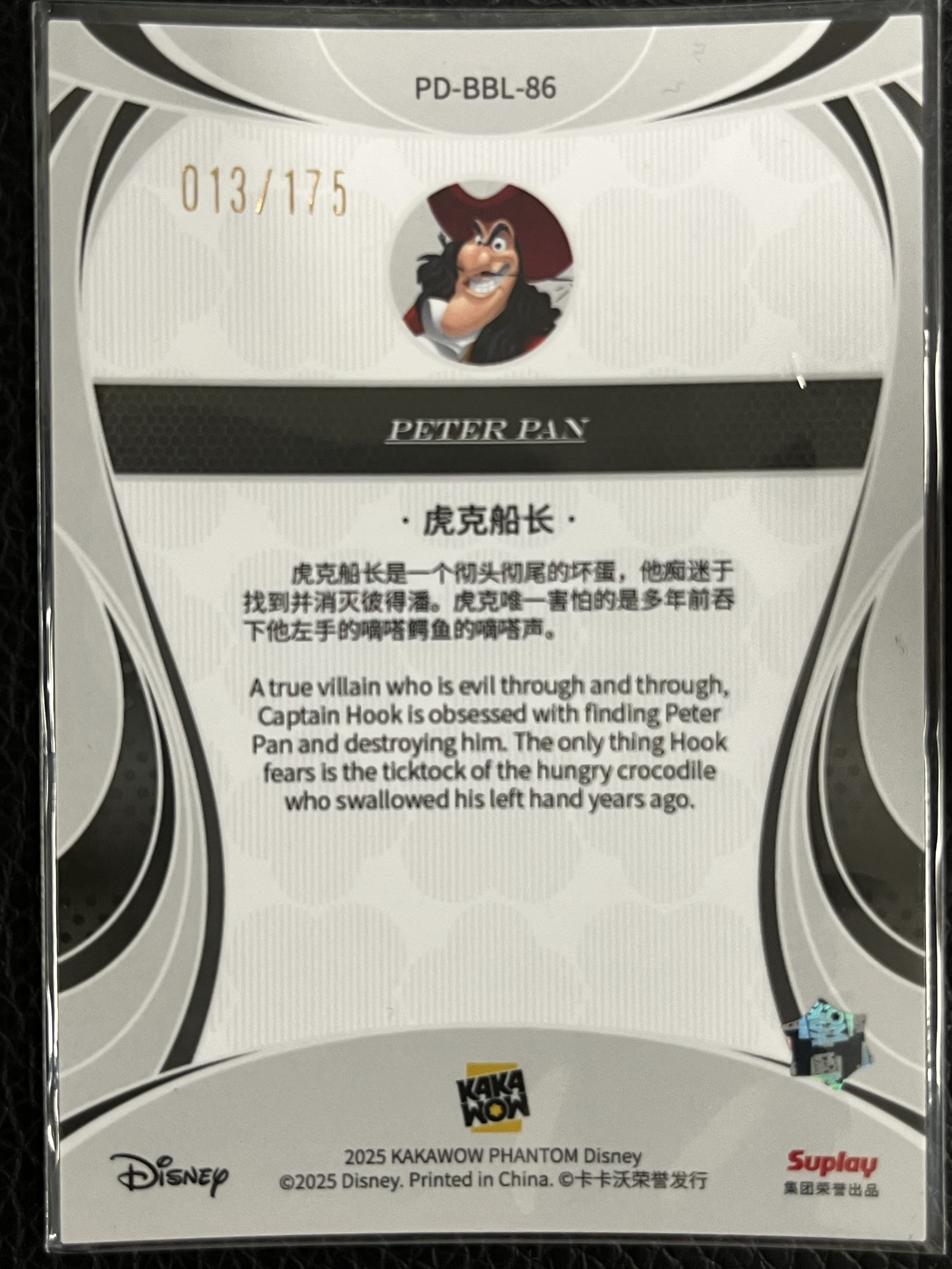 卡卡沃 2025 KAKAWOW PHANTOM 迪士尼系列收藏卡 基础卡-蓝 西GXX(12A)13/175编 卡号86 虎克船长 Captain Hook