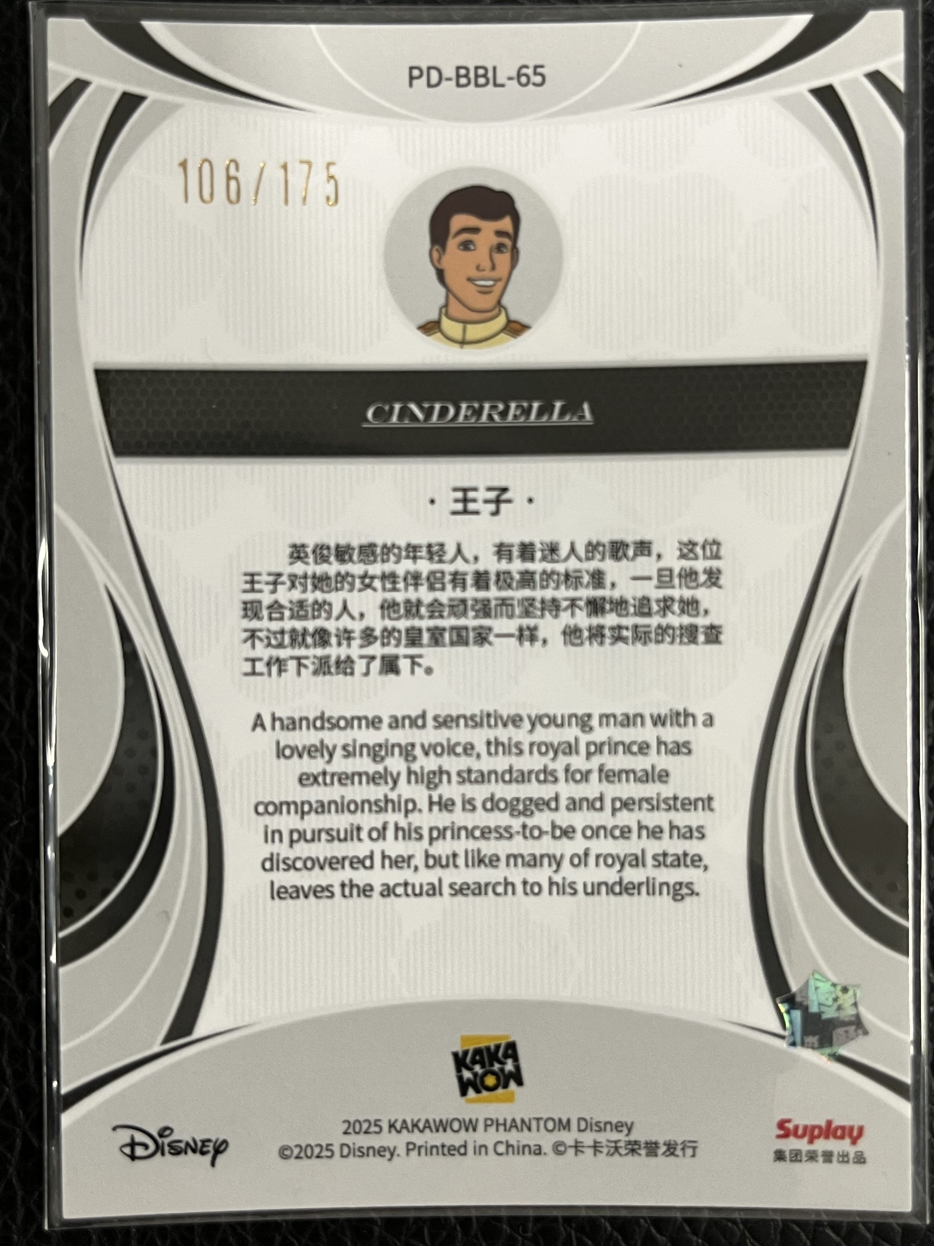 卡卡沃 2025 KAKAWOW PHANTOM 迪士尼系列收藏卡 基础卡-蓝 西GXX(12A)106/175编 卡号65 王子 Prince Charming