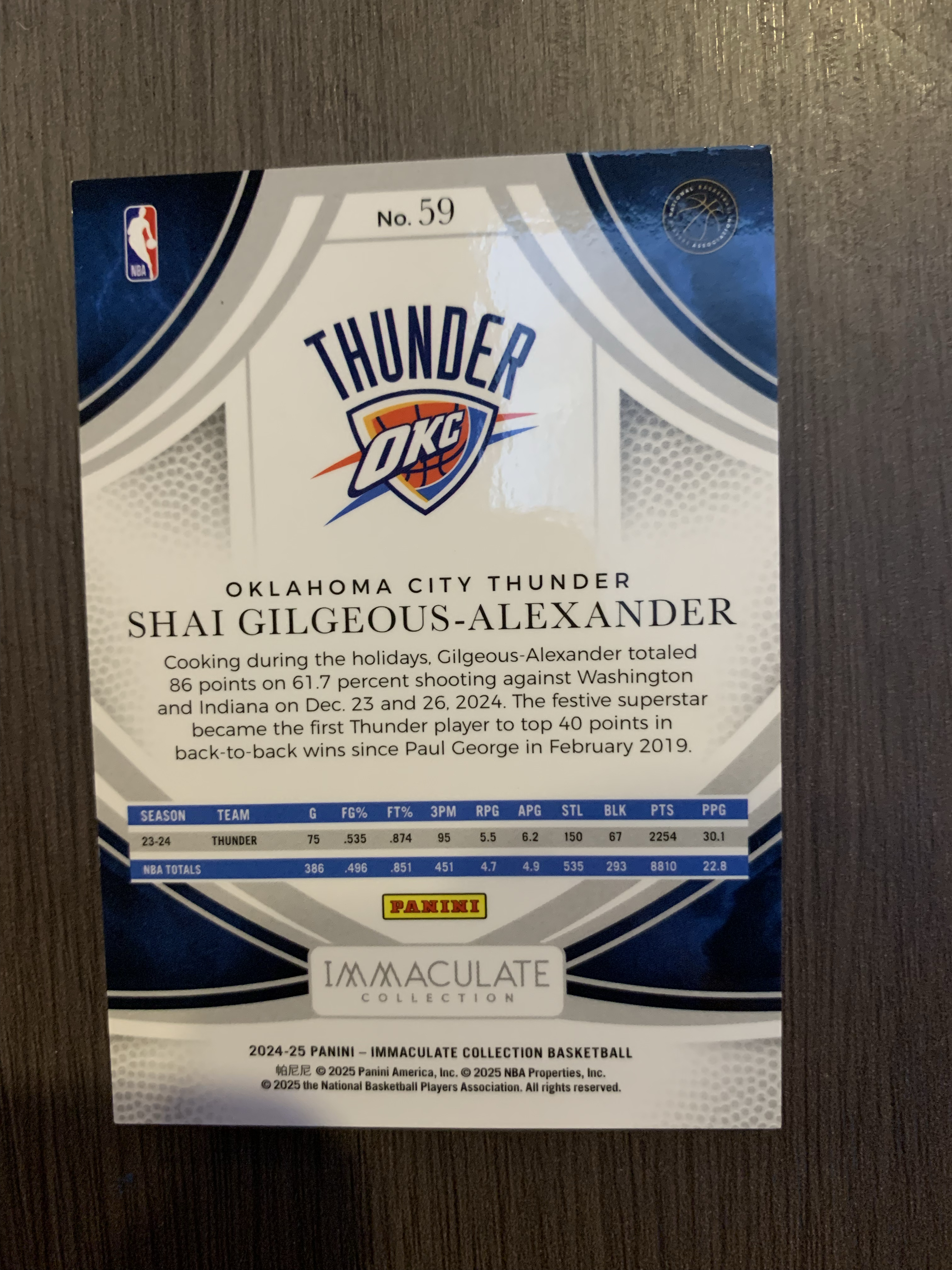 2024-25 PANINI IMMACULATE COLLECTION SHAI GILGEOUS ALEXANDER 谢伊 吉尔杰斯 亚历山大 SGA 29/49编 IMM 雷霆 篮球 于此