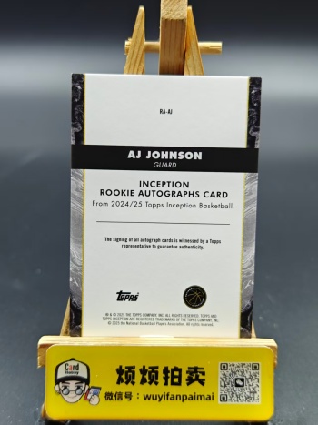 2.参拍:卡品墨迹如图所示(厚卡异形卡等都有正常白边白角,部分系列会有特殊瑕疵),请认真看图后再谨慎出价。不接受任何艺术家买卡,如拍到卡后有任何艺术家行为(包括但不限于在通行卡品里挑瑕疵索要赔偿或退卡等)一律拉黑投诉处理。所卖卡未经描述均为通行品,可能会有细微瑕疵;打包标小卡可能会有不同程度的瑕疵,不保障卡品;评级卡壳和原封砖的磨损不包含在卡品范围内;多张上拍卡品通行的同款卡片随机发货。竞拍前可以私聊要细节图,成交后再以有瑕疵、勿拍等理由退卡的一律拒绝,介意者请勿参拍!参拍即视为已读同意!