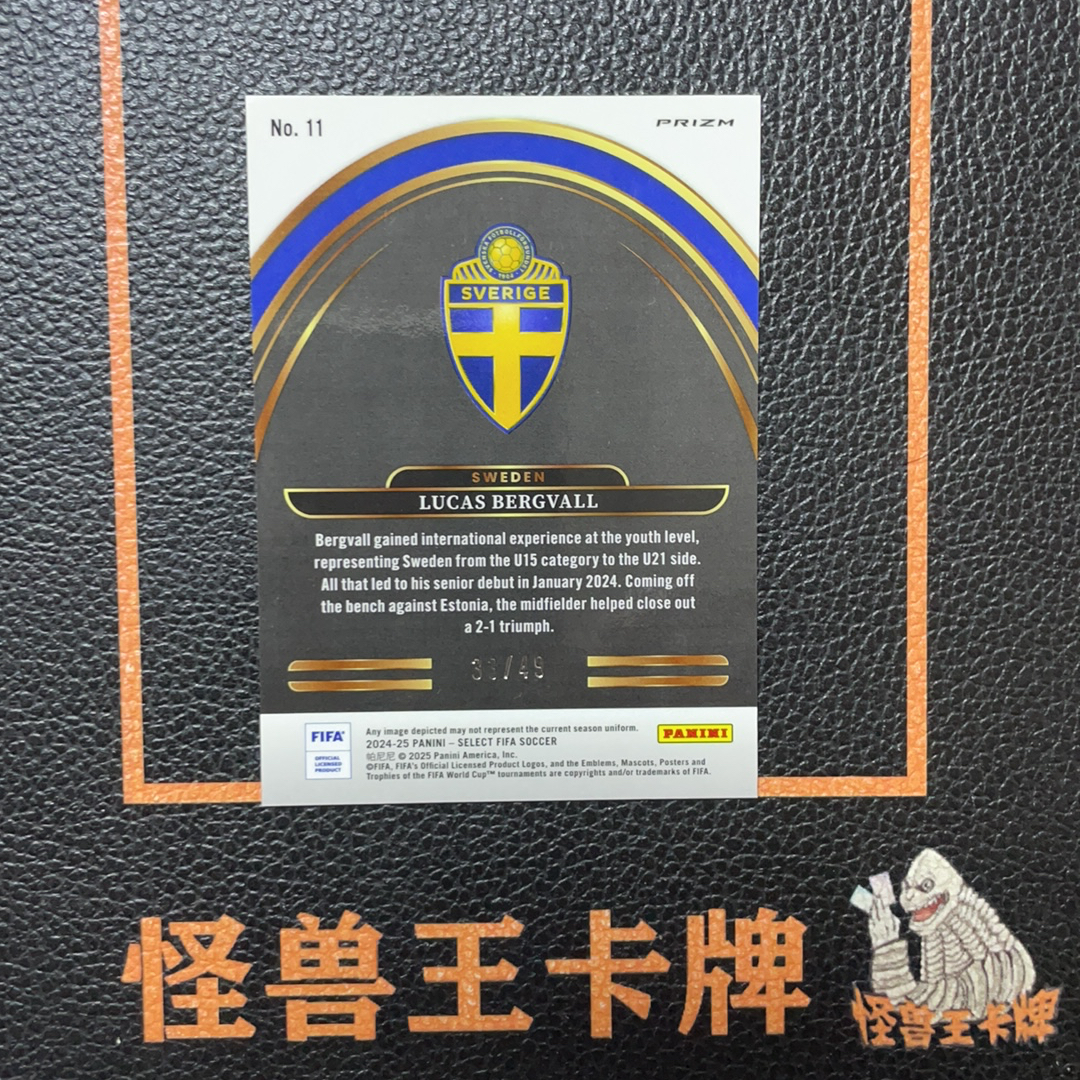 (怪兽拍卖) GSW-A52 2024-25 Panini Select lucasd bergvall 卢卡斯 贝里瓦尔 新秀RC 瑞典 Future未来特卡 49编 红波纹折 FIFA