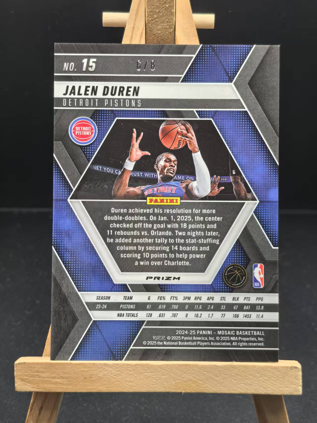 2024-25 Panini Mosaic Jalen Duren 舟 马赛克 活塞 杰伦 杜伦 6/8编 新春 折射 暴力内线 潜力十足 微白边角111017(迪宝
