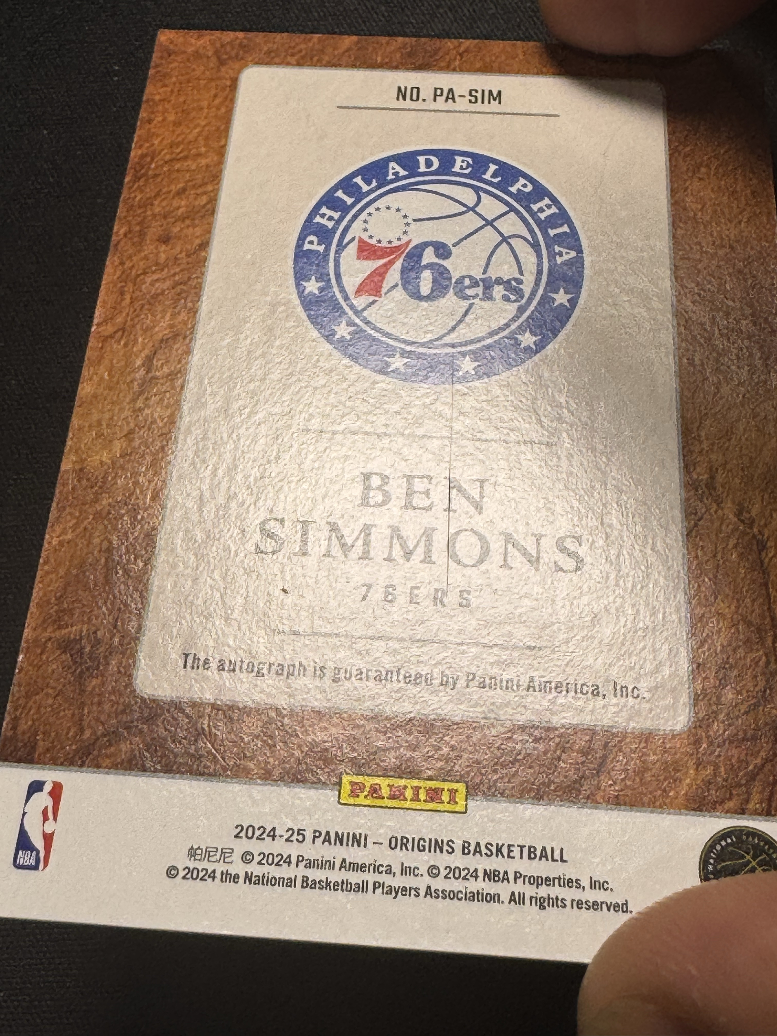 【大师兄拍卖】2024-25 Panini Origins BEN SIMMONS 76人 本 西蒙斯 起源 06/10编 金平行 签字 卡签 provenance签 瑕疵看图 -五代-