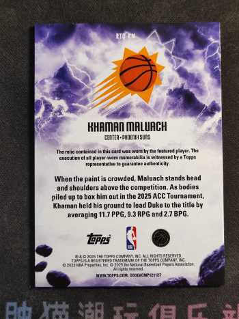 【肿猫球星卡潮玩俱乐部】实体店铺,信誉保障。购买须知:①所有卡的品相为通行品如有重大品相残次问题会在描述中注明。木盒、手提、国宝、IMM、Noir、小真金等等厚卡系列的卡片,有轻微白边白角属于正常品相,折射卡、镜面卡有机械划痕、印刷线属于正常品相,所有卡片不保证后续评级分数。②拍卖卡片不含卡具,自带官方原封砖、原封夹的除外,收到有卡具属于赠送性质,不接受因卡具问题维权,带有原封卡砖、卡夹的卡不保证卡品介意勿拍。③卡片截标后请于3日内通过卡淘线上进行付款,本店保证付款后24小时之内发货,3日内不付款第四日关闭订单,不接受后续协商重开,请免开尊口,本店所有卡片均不支持累计。④签收时请拆封仔细检查卡片品相并录制拆箱视频以便佐证,如果有疑问请于快递签收3日内通过内站内信联系客服,超过3日客服将不予受理。如若遇到快递运输造成卡品损坏与丢失问题,属快递公司的工作失误,本店不予赔偿,但会积极配合买家追诉快递公司的赔偿责任,协助买家将损失降到最低。发货时默认卡淘后台收货人信息,如有其它收货地址,请付款前私信客服提供地址,因地址问题发生纠纷请参考卡淘平台规则。为保证服务质量,本店发货只发顺丰陆运寄付,运费18元,超过首重退运费发顺丰到付,偏远地区(如海南、新疆、西藏、青海、甘肃、内蒙古、云南、广西、宁夏、江西、贵州、港澳台地区)顺丰到付。本店卡淘客服工作时间为:每周一~周五 9:00-17:00,按国家法定节假日公休,由于卡淘工作量巨大,如有怠慢请谅解。更多了解,欢迎加入官方QQ群(天津肿猫球星卡:637855320),店内微信客服(肿猫客服:13001360442)