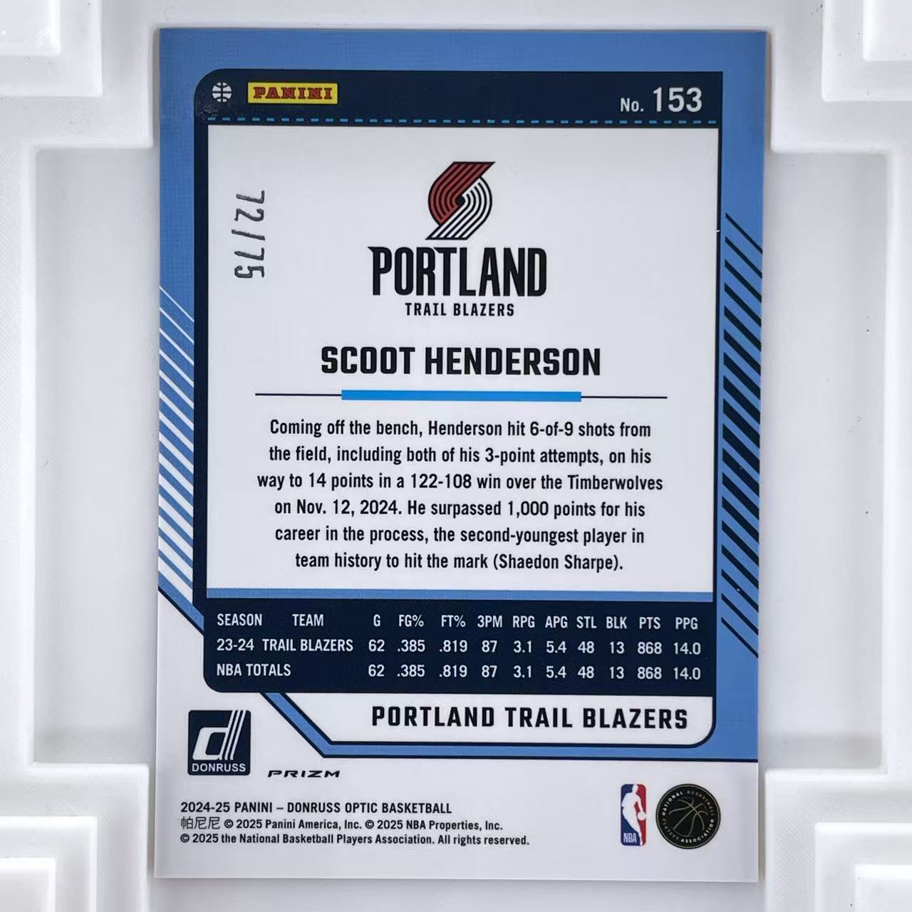 这一项十分重要!!!所有卡片为高清实拍图,劳烦仔细看图!!!有什么需要不清楚的可以联系客服,可以为您单独拍摄卡片额外细节;一旦出价默认接受卡品(不接受一系列没拍特写,自己没看仔细不想要等理由退换货)如无图片特殊展示瑕疵均为通行品相,一般prizm optic 等系列薄卡的小划痕印刷线,国宝IMM等系列厚卡的小白边小白角翘角钝角等,都属于通行品相。完美主义者请直接购买PSA10或者公博金标,发货之后不退不换(购卡的买家拆快递的时候也请拍开箱视频以便维护自己的权益)。描述如没有注明均不含卡砖(需要请与站内沟通)。