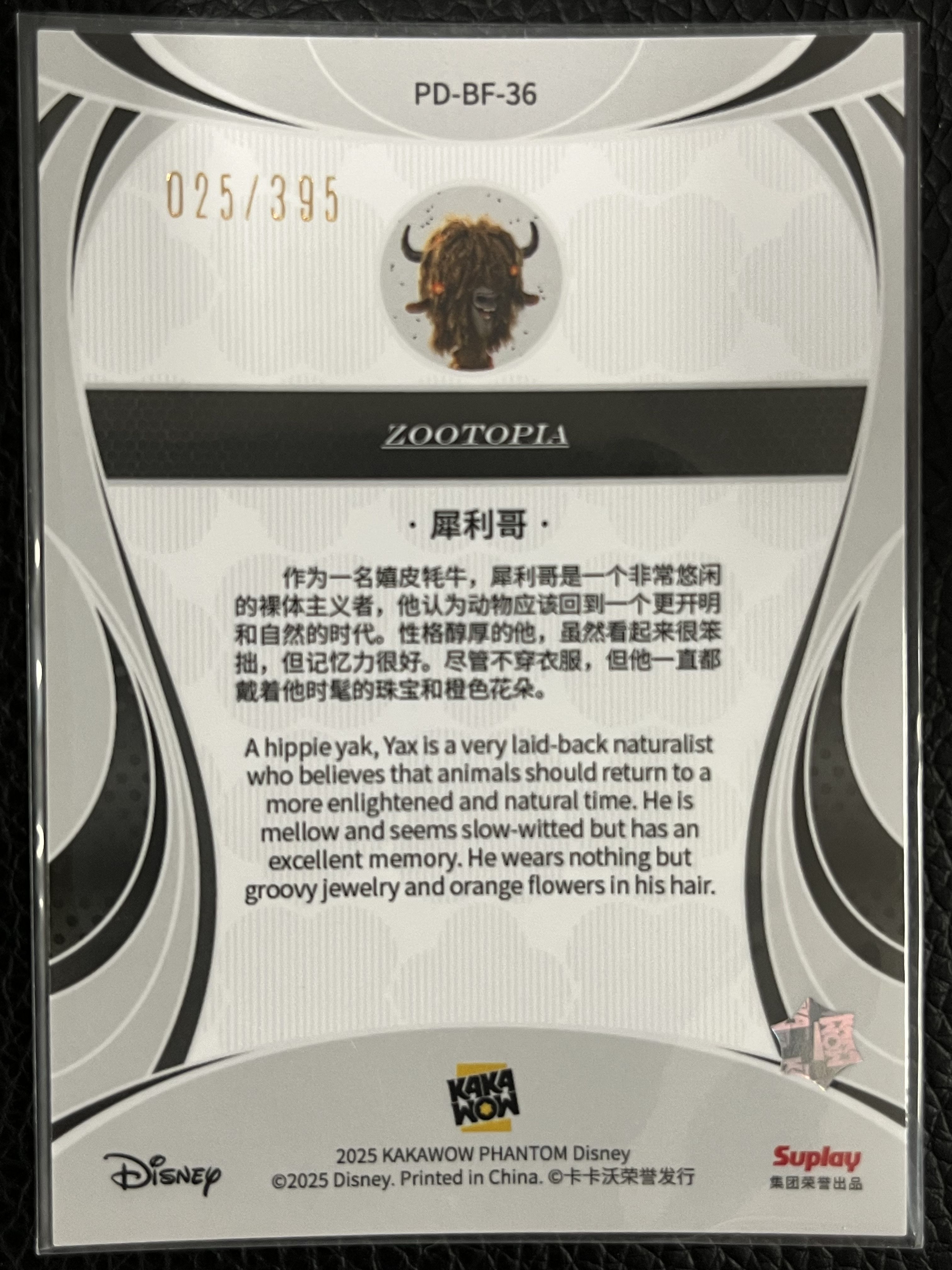 卡卡沃 2025 KAKAWOW PHANTOM 迪士尼系列收藏卡 基础卡-四叶草折 雯H(13A)25/395编 卡号36 犀利哥 Yax the Yak