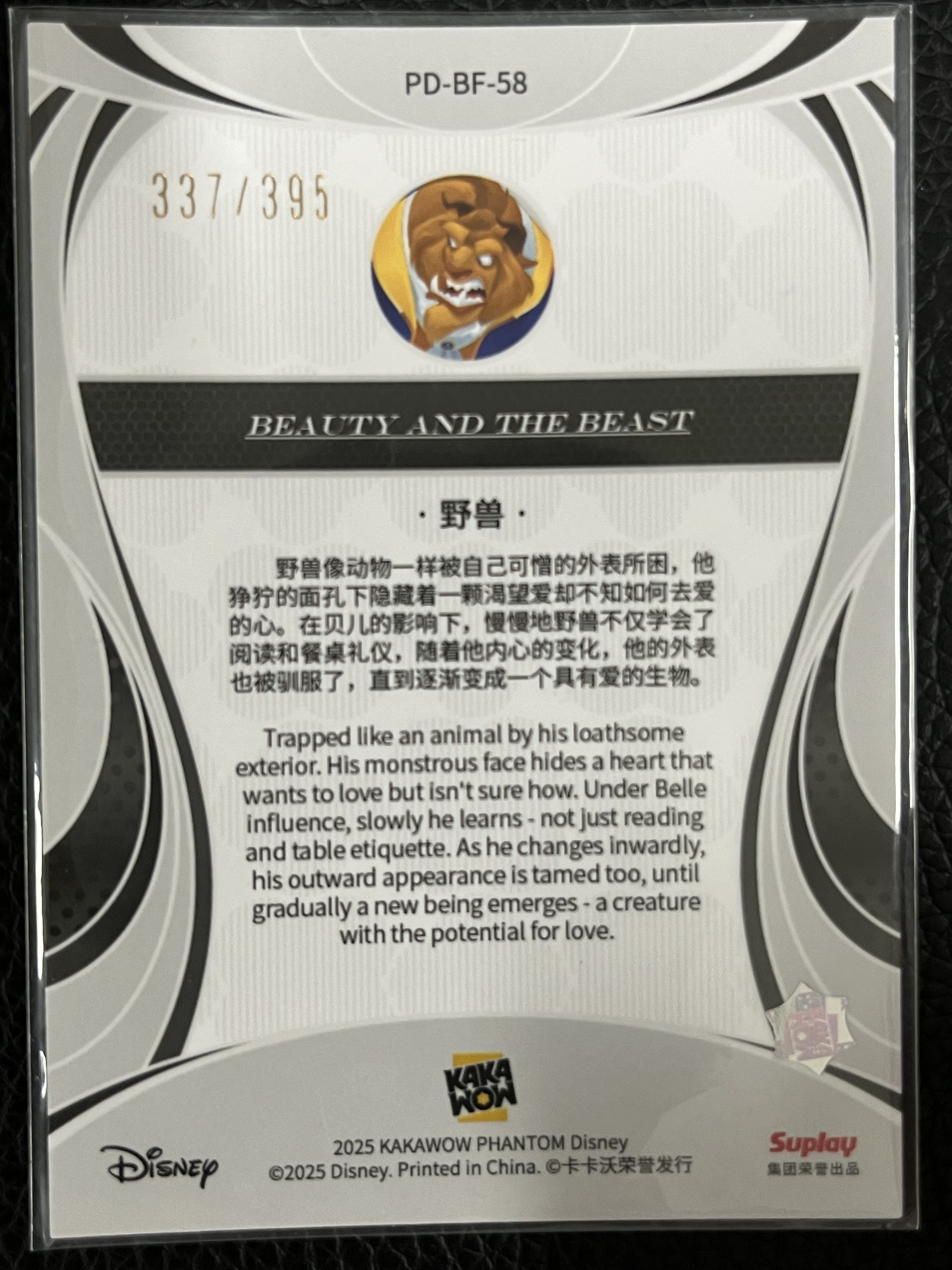 卡卡沃 2025 KAKAWOW PHANTOM 迪士尼系列收藏卡 基础卡-四叶草折 雯H(13A)337/395编 卡号58 野兽 The Beast