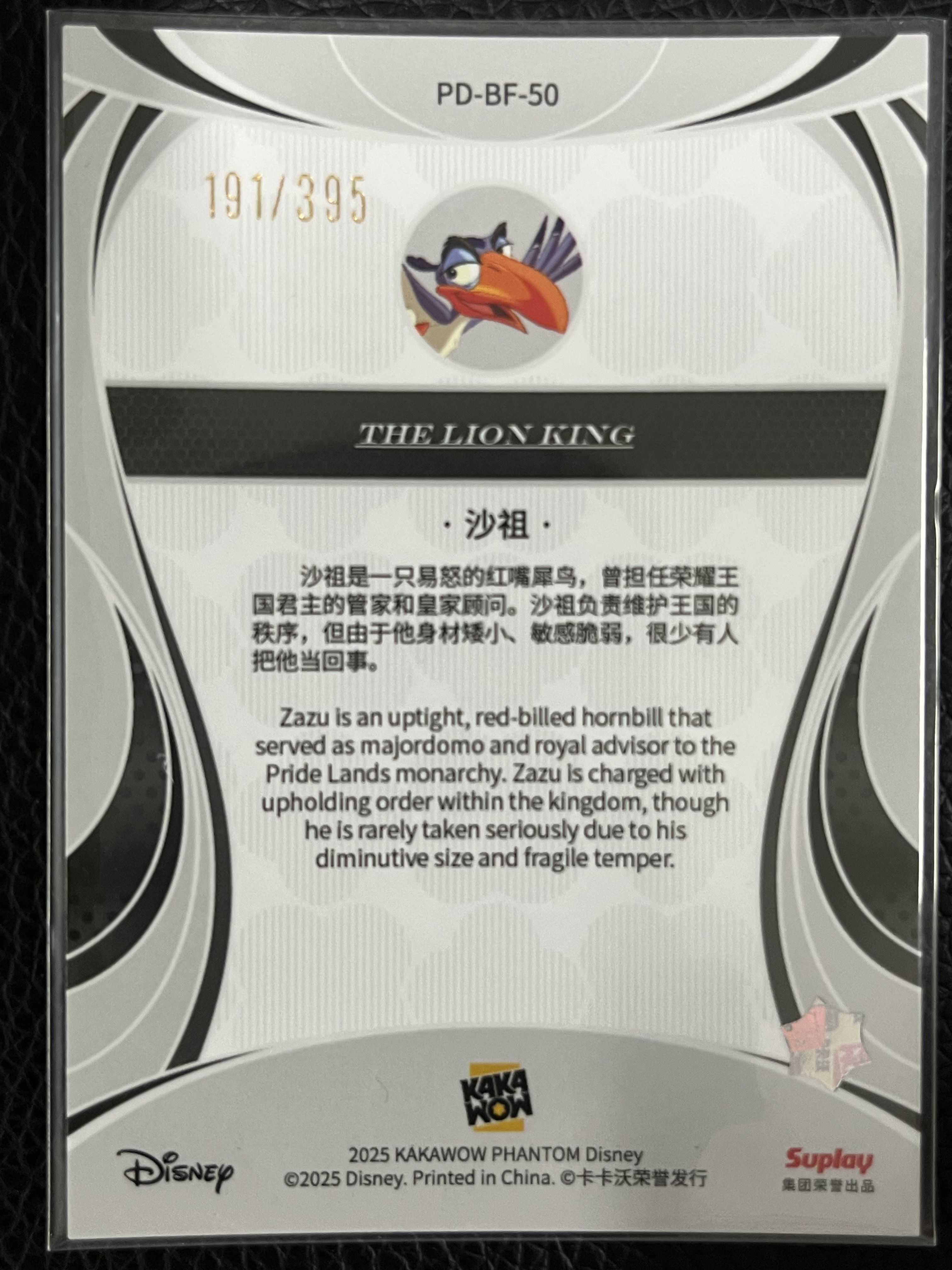 卡卡沃 2025 KAKAWOW PHANTOM 迪士尼系列收藏卡 基础卡-四叶草折 雯H(13A)191/395编 卡号50 沙祖 Zazu