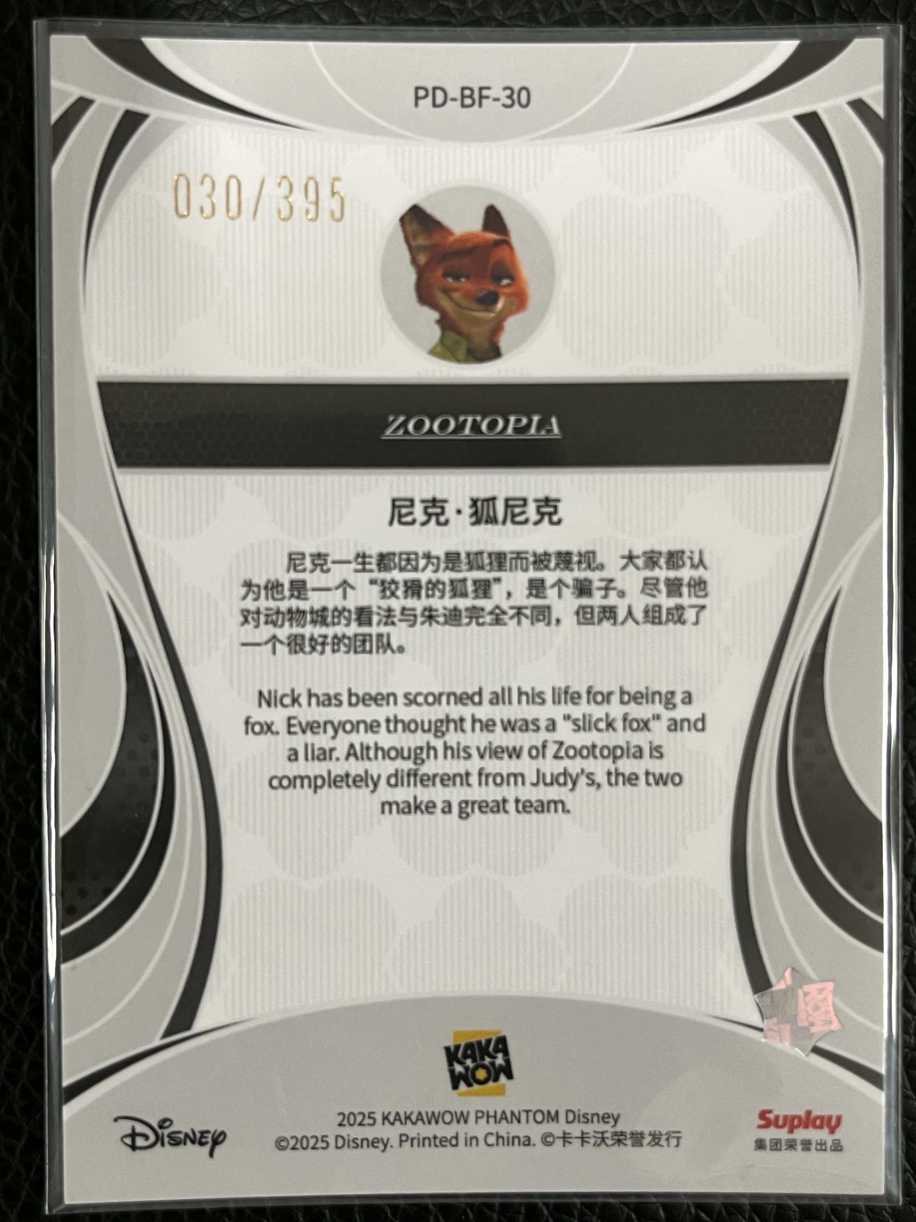 卡卡沃 2025 KAKAWOW PHANTOM 迪士尼系列收藏卡 基础卡-四叶草折 雯H(13B)30/395编 卡号30 尼克·狐尼克 Nick Wilde