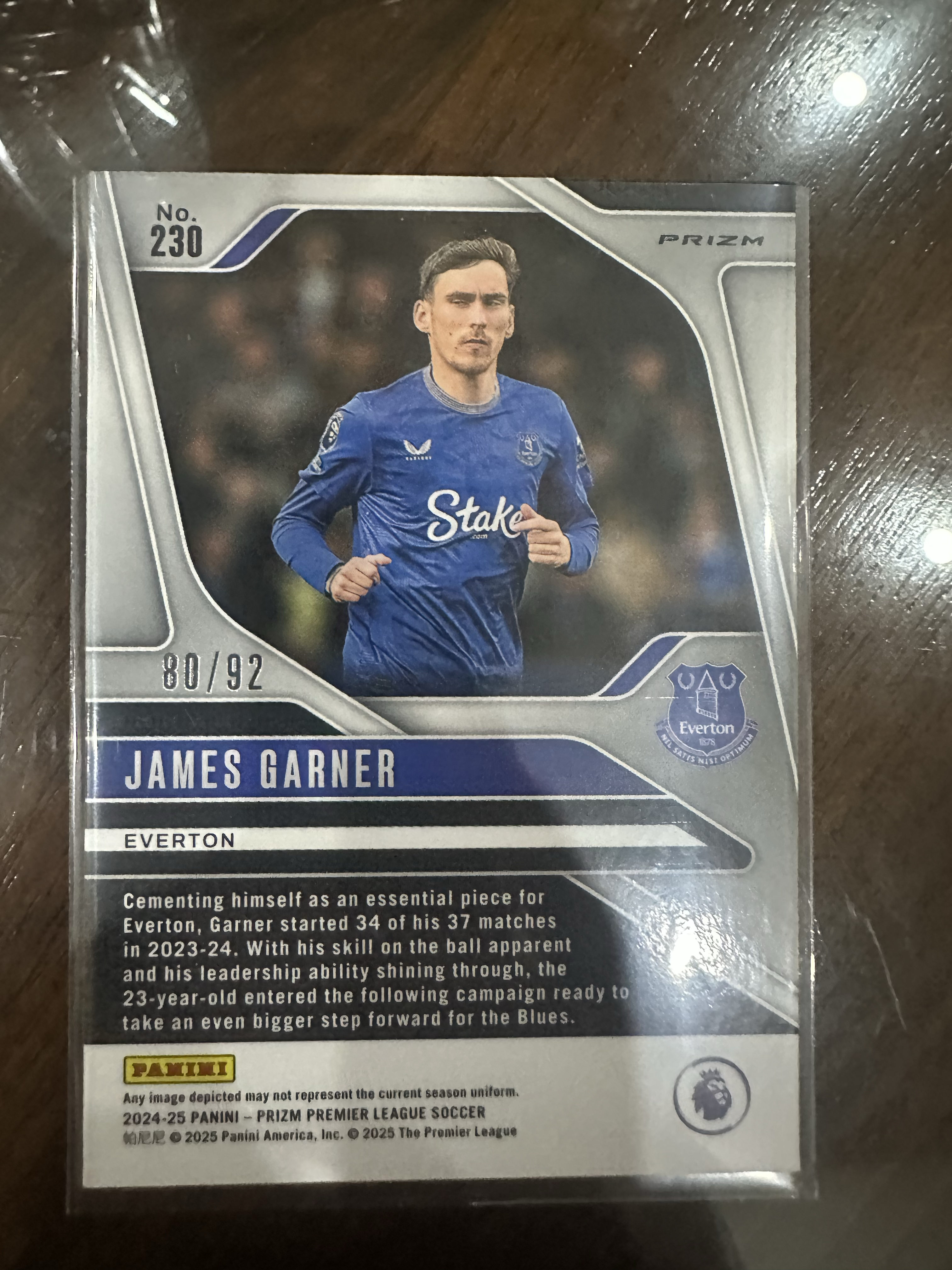 2025 Panini Prizm garner James Garner 英超pz 詹姆斯 加纳 /92编 紫白条纹折 埃弗顿 微痕如图 极具收藏价值 未来必涨 英格兰🏴