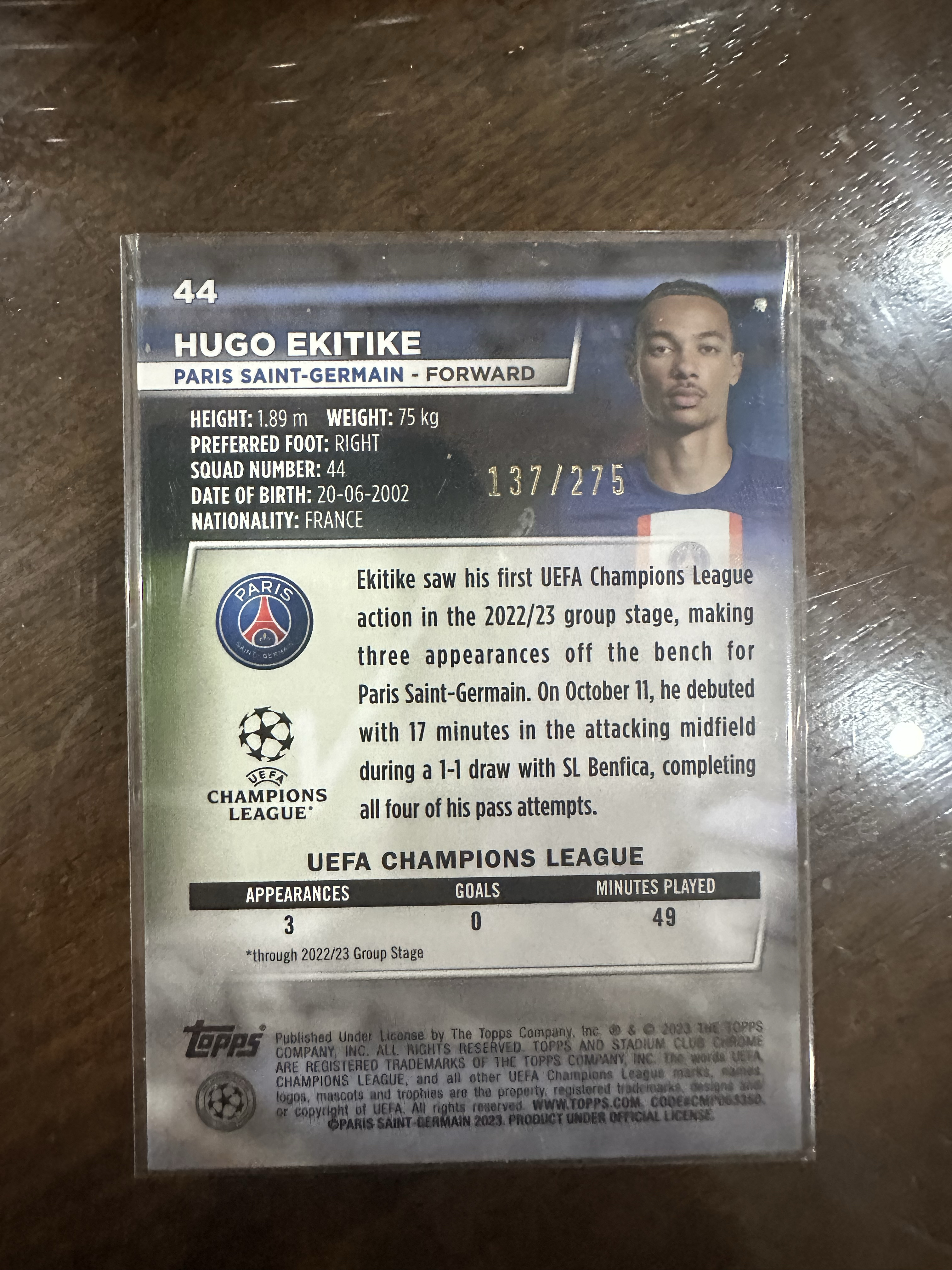 2023 Topps Stadium Club Chrome Hugo Ekitike RC 欧冠 Chrome 竞技场 巴黎圣日耳曼 利物浦 新秀 埃基蒂克 275编 法国🇫🇷 亚马尔 姆巴佩