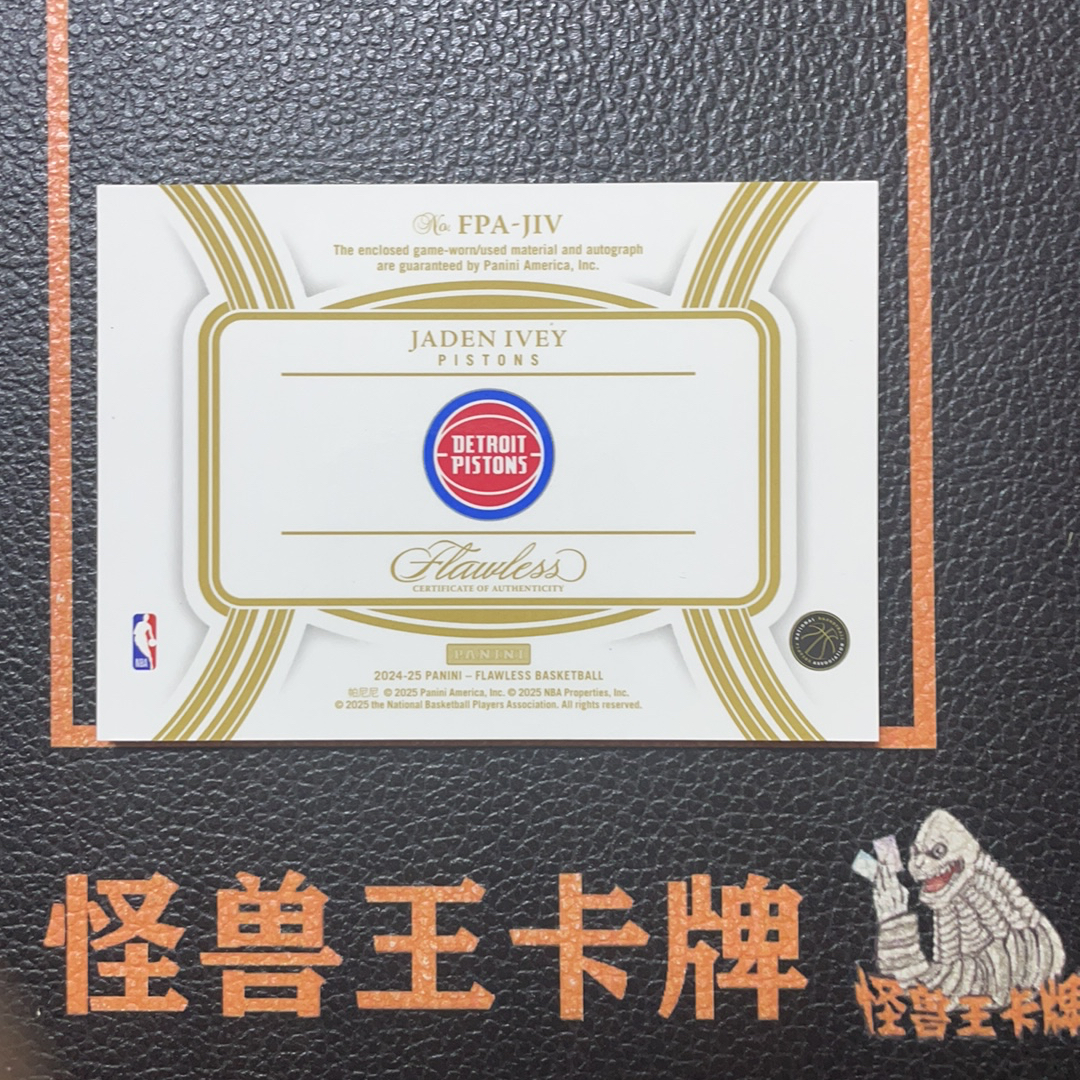 (怪兽拍卖) GSW-C90 2024-25 Panini Flawless Jaden Ivey 手提末年 杰登 艾维 活塞 签字 卡签 23/25编 同背 FPA 暴力切割 签字 卡签
