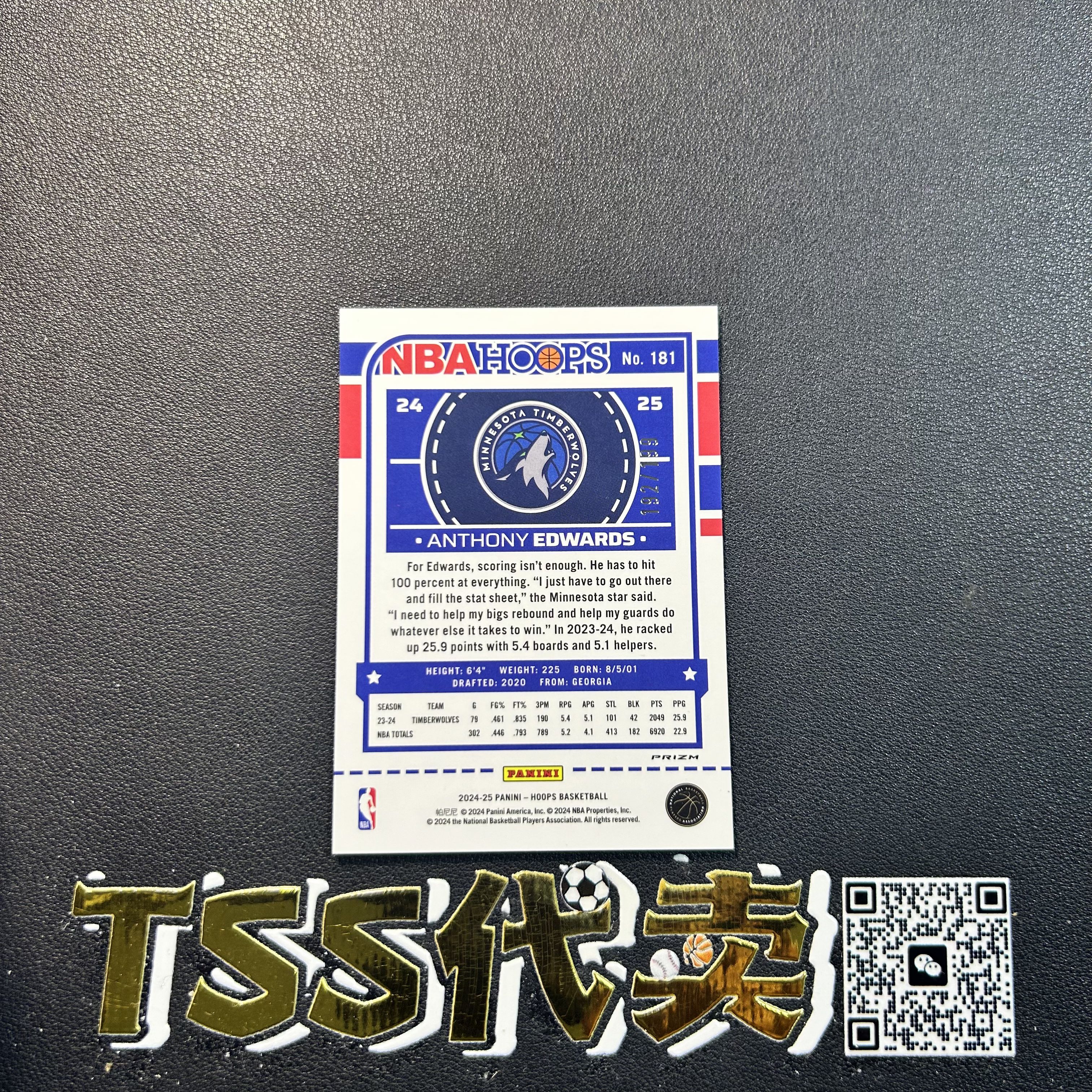 2024-25 Panini Hoops Anthony Edwards 【TSS代卖-预付80%】 森林狼 安东尼 爱德华兹 华子 折射 橙折 /199编 JH4549 LK48-陳