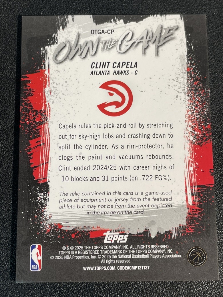 2025 Topps NBA Flagship Clint Capela 32 克林特 卡佩拉 老鹰 掌控比赛 球衣 物料 微瑕如图 卡品如图 尖叫代拍 封印