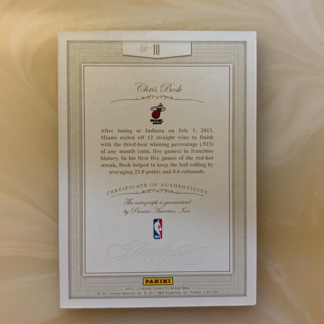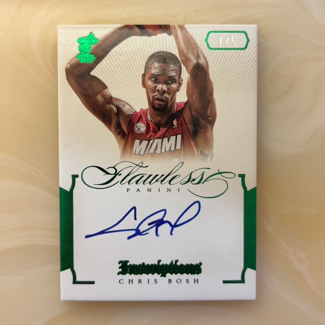 2012-13 Panini Flawless Chris Bosh 手提 元年 克里斯 波什 龙王 1/5编 首编 同背 绿平行 签字 卡签 卡品如图