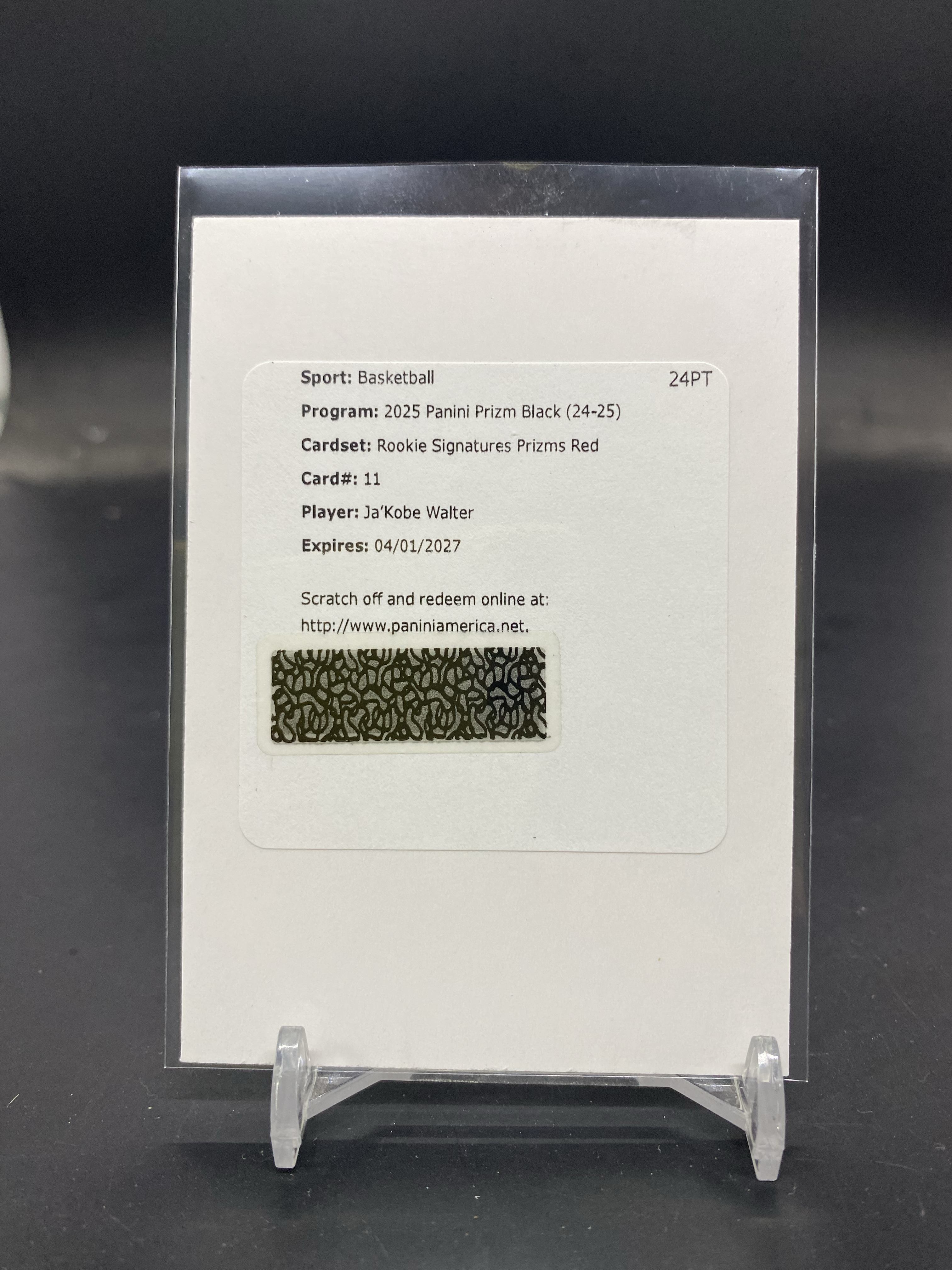 2024-25 Panini Prizm Black Ja'Kobe Walter RC pz 猛龙 新秀 贾科比 沃尔特 /99编 红折 签字 签名 折射 交换板 只邮寄AZ-11「80」