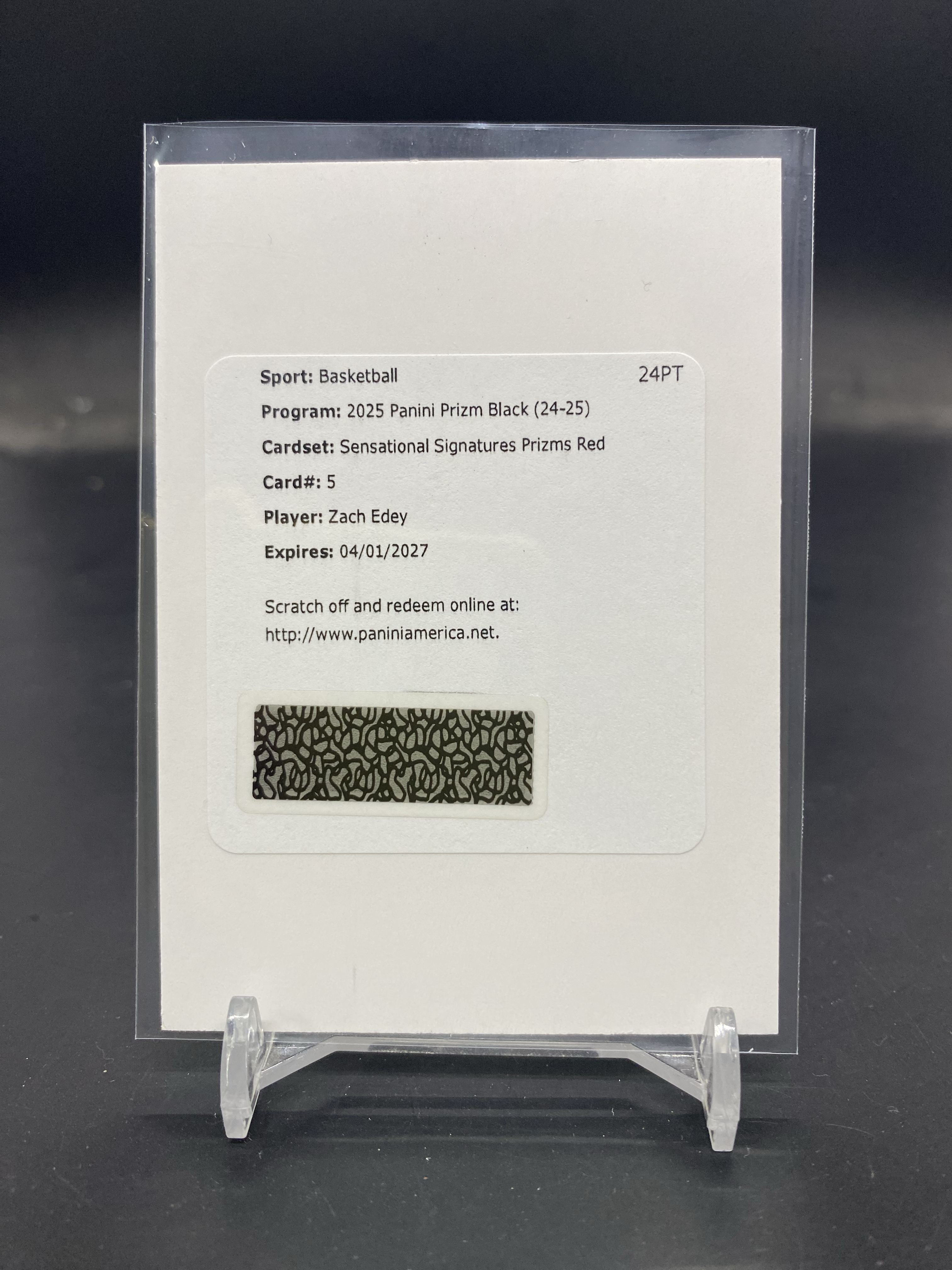 2024-25 Panini Prizm Black Zach Edey RC pz 灰熊 新秀 周志豪 扎克 埃迪 /99编 红折 SS签 签字 签名 折射 交换板 只邮寄AZ-28「80」