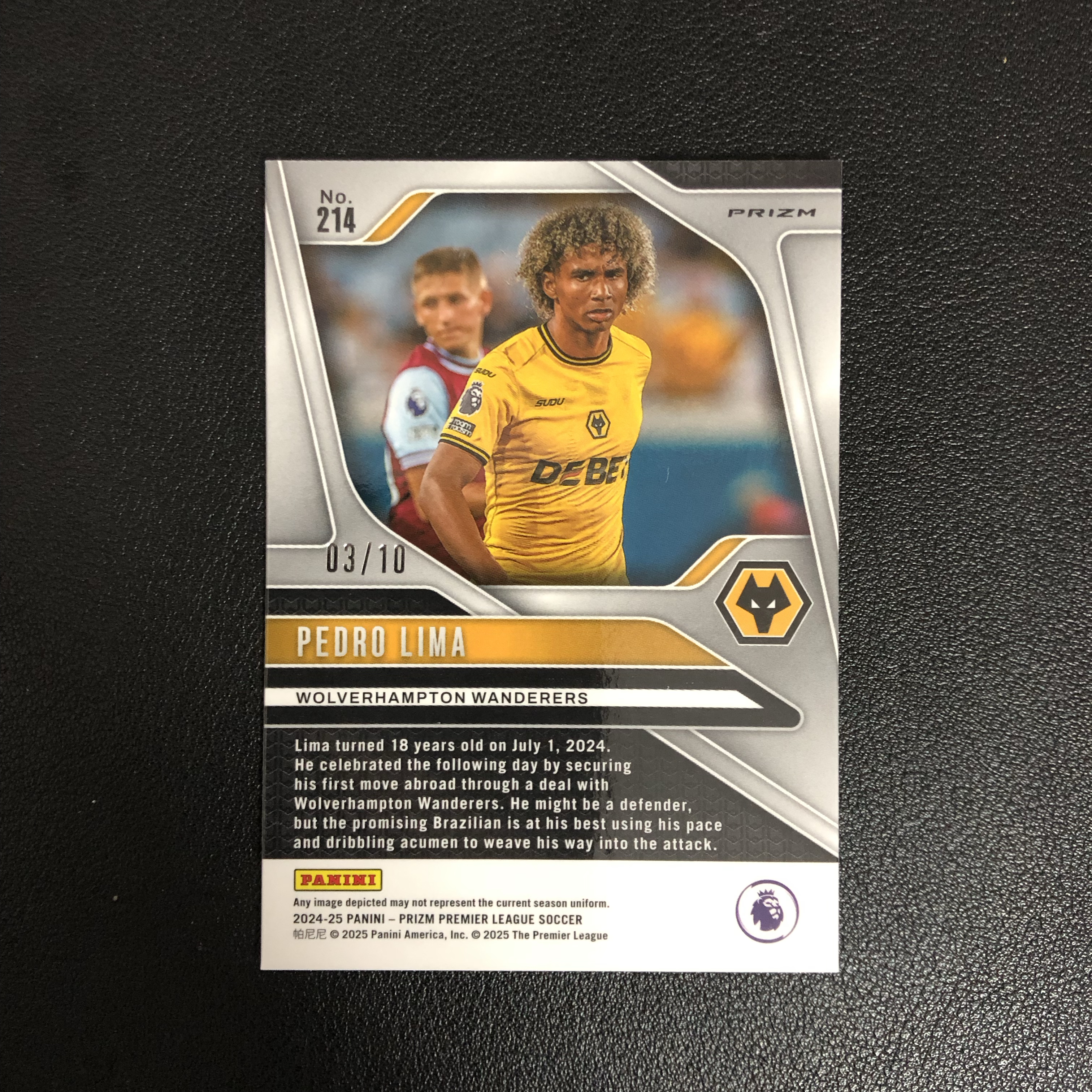 2024-25 panini prizm pedro lima 英超 狼队 佩德罗 利马 rc 新秀 金泡泡折 折射 03/10编 低编 金折 卡品如图 默认微瑕 收藏必备(姜不听)