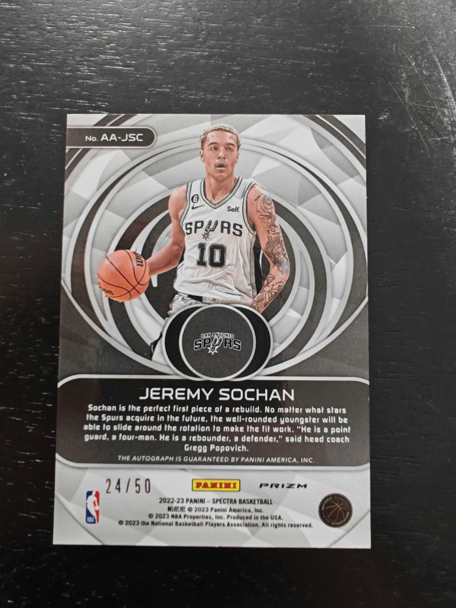 2022-23 Panini Spectra Jeremy Sochan 马刺 索汉 光谱 绿折签字 新秀带编 50编