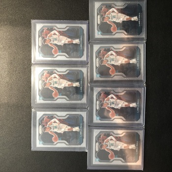 (3) 卡品请看标题描述或结合图片,图片里面如果明显可以看到的卡品有瑕疵的,如有疑问请出价前咨询,如果收到卡对卡品不满意但是本店照片或描述中可以体现的,本店不负任何责任。所有卡的品相为通行品(白边白角;镜面、折射系列卡面划痕、印刷自带痕迹或覆膜不平起泡等卡片自身问题均为通行品),如有品相残次问题会特别注明。木盒、国宝、IMM、Noir、pre系列卡片,都有正常白边白角,镜面有划痕属于正常品相,新秀折射不保证金标。由于上标数量比较多,请多理解,谢谢!