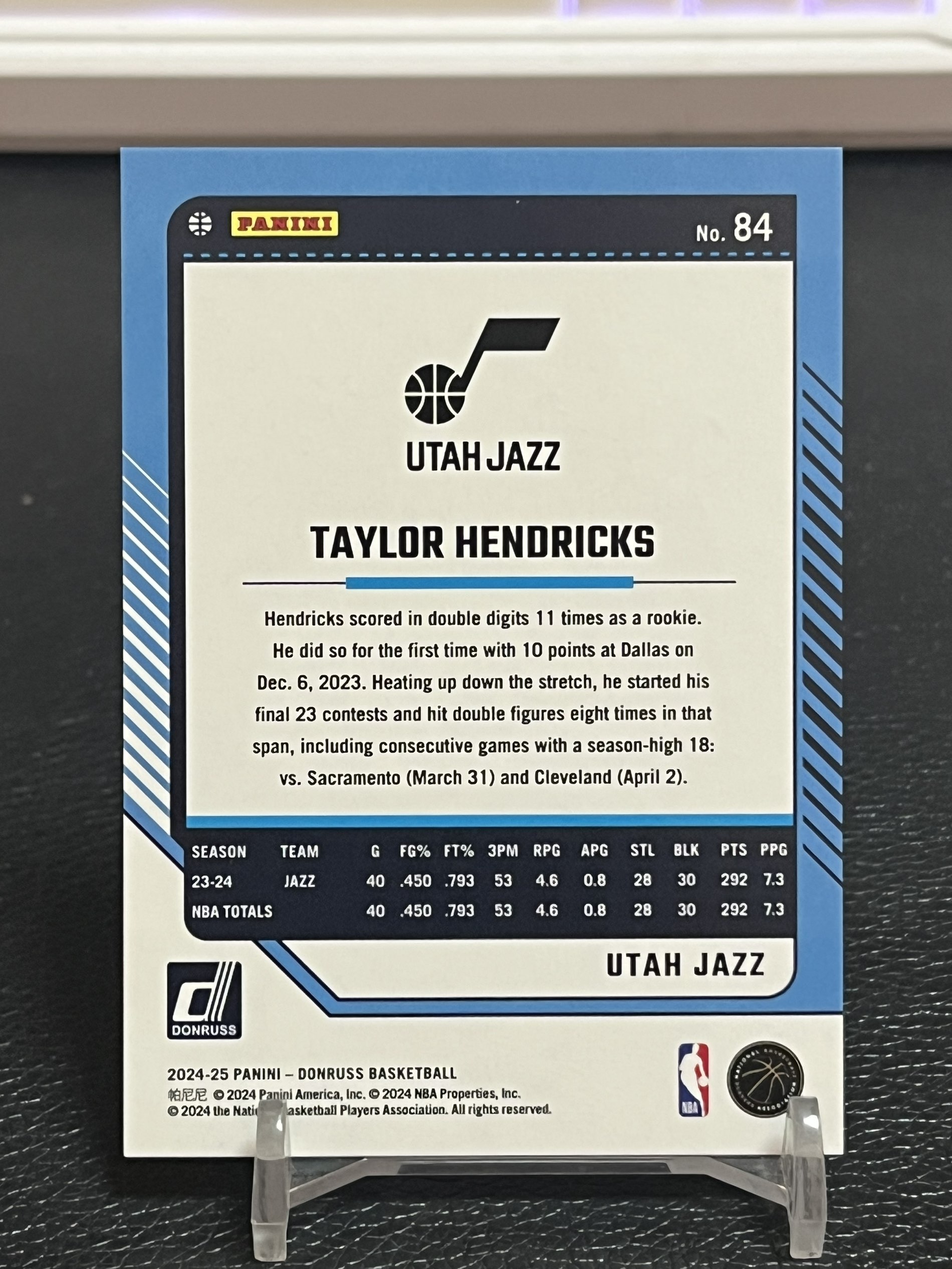 【浩行拍卖 截标预付82%】2024-25 panini Donruss taylor hendricks 杜蕾斯 爵士 泰勒 亨德里克斯 蓝爆炸折 折射 40/45编 专收必备 瑕疵看图「阁调」1114F04祺