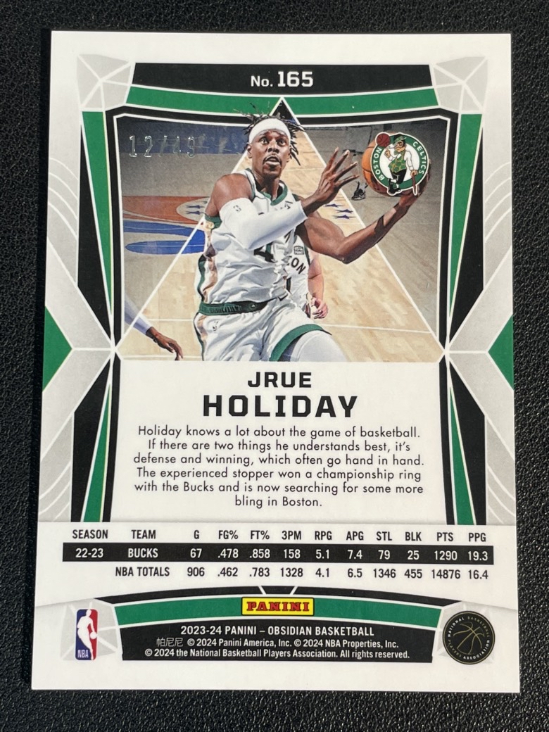 2023-24 Panini Obsidian Jrue Holiday 75 朱 霍勒迪 凯尔特人 黑曜石 折射 紫折 49编 实卡精美 卡品如图 尖叫代拍 朕