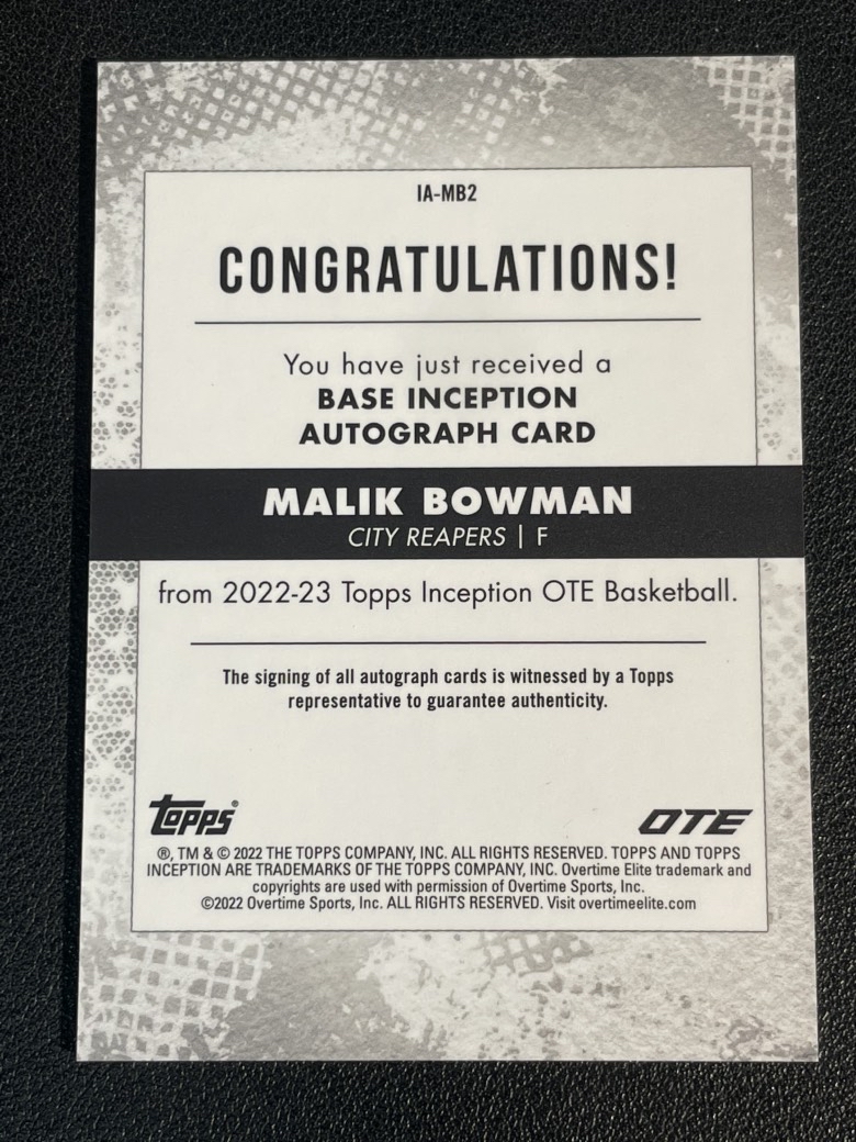 2022 Topps inception Malik Bowman 100 马里克 博曼 鲍曼 OTE 盗梦空间 折射 橙折 签字 50编 实卡精美 卡品如图 尖叫代拍 朕