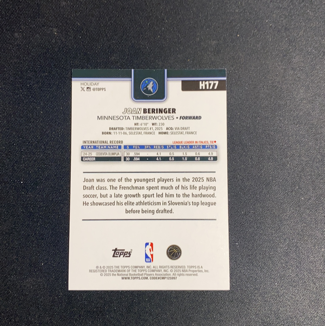 2025-26 Topps Flagship Joan Beringer RC 假日 森林狼 新秀 若昂 贝兰热 99编 卡品如图 空白