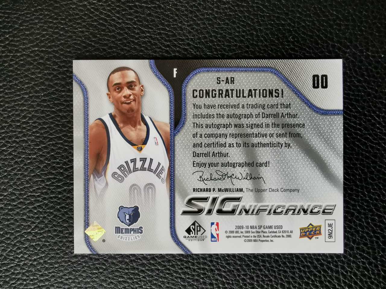 【金矿拍卖】2009-10 upper deck ud significance 灰熊 达雷尔亚瑟 darrell arthur 签字 新秀次年 小天