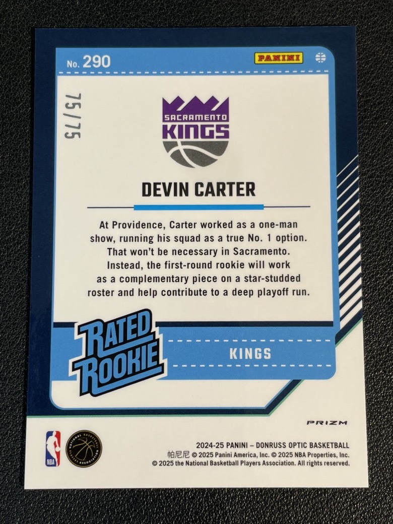 2024-25 Panini Donruss Devin Carter RC 257 德文 卡特 国王 新秀 杜蕾斯op 折射 黑金圈圈折 75编 微瑕如图 卡品如图 尖叫代拍 Lance