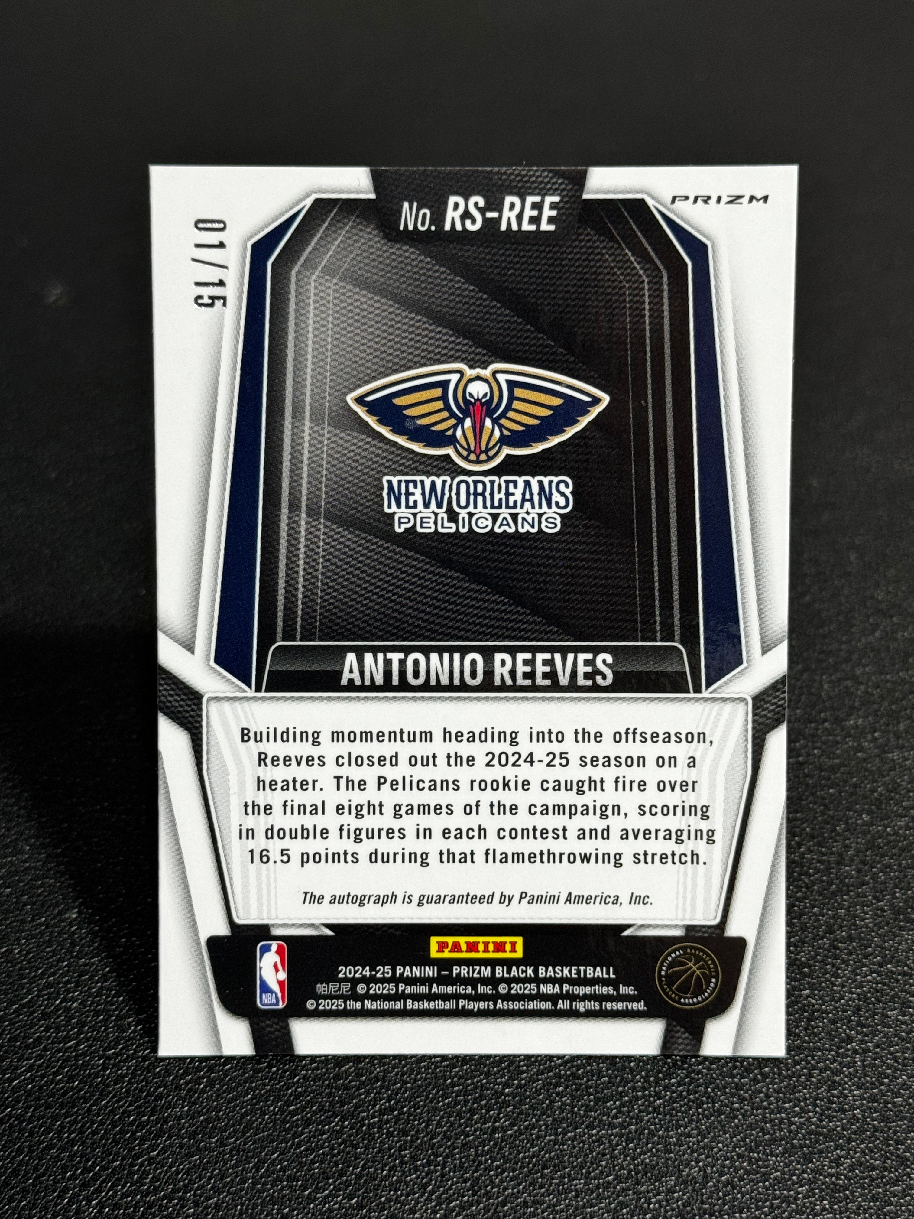 2024-25 Panini Prizm PZ Black 蛇皮折 1/15编 签字 Auto 鹈鹕 新秀 RC 安东尼奥・里夫斯 Antonio Reeves LWLQ