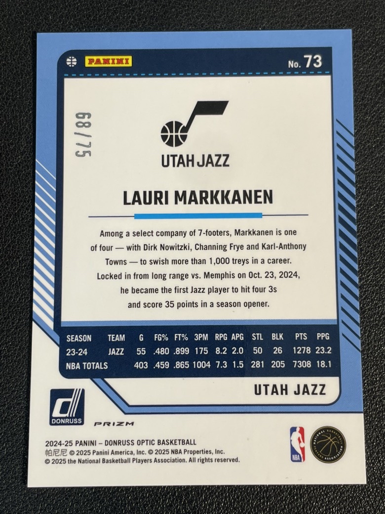 2024-25 Panini Donruss Lauri Markkanen 261 劳里 马尔卡宁 爵士 杜蕾斯op 折射 红折 红泡泡折 75编 实卡精美 卡品如图 尖叫代拍 封印