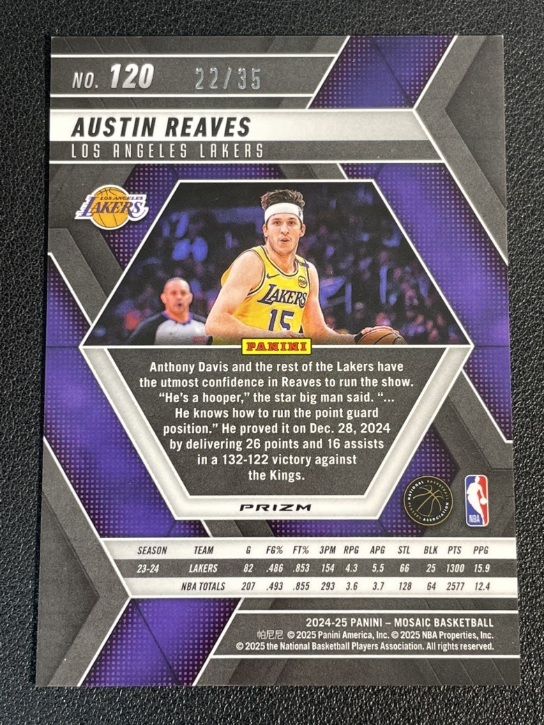 2024-25 Panini Mosaic Austin Reaves 262 奥斯汀 里维斯 湖人 折射 蓝折 蓝圈圈折 35编 微瑕如图 卡品如图 尖叫代拍 封印