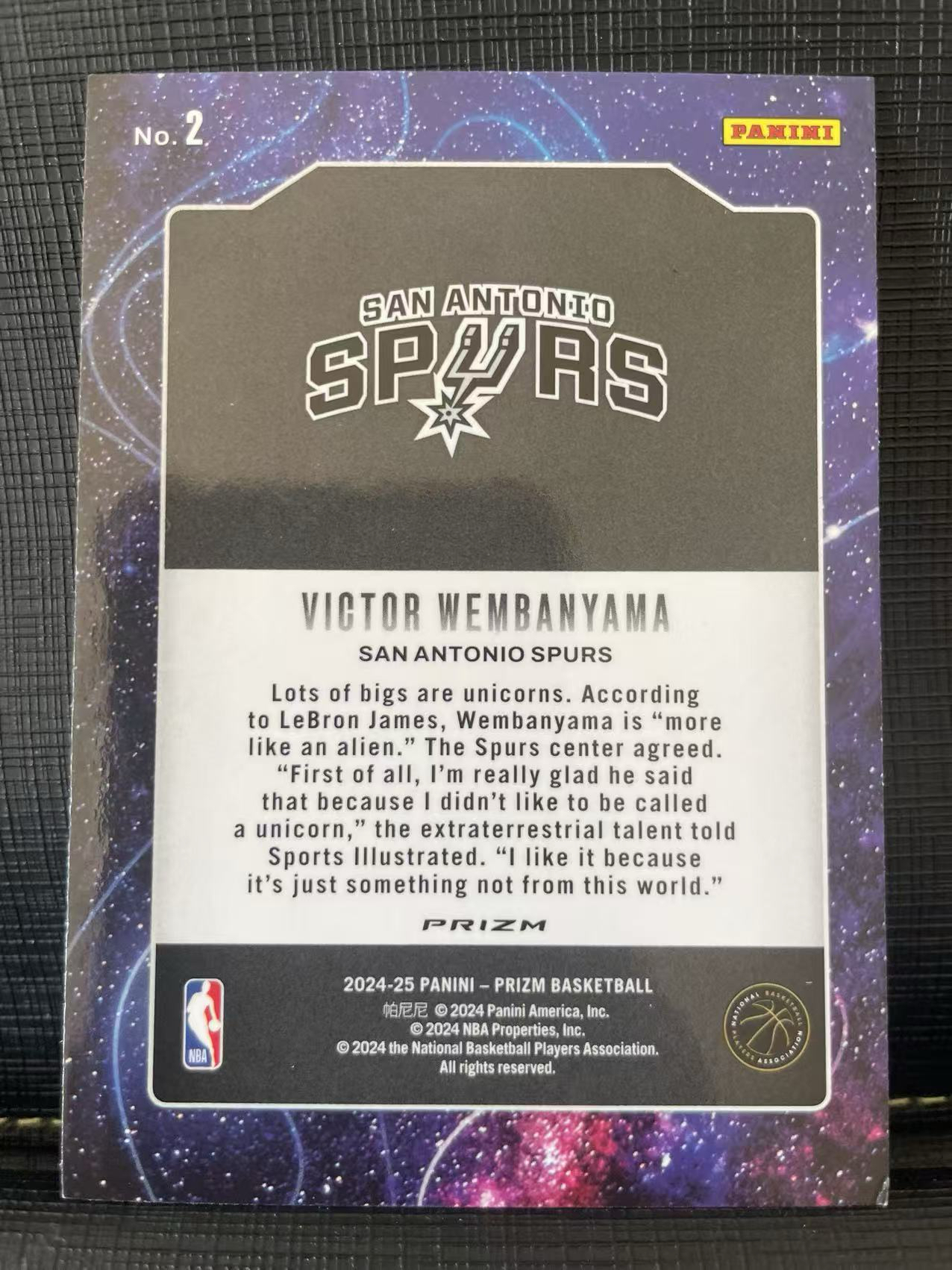 2024-25 Panini NBA Hoops Victor Wembanyama 马刺 状元 文班亚马 折射!恐怖的怪物!持续暴走!记录赛场瞬间💗聚光灯下 记录经典 跳转的时空 闪击的画面💗