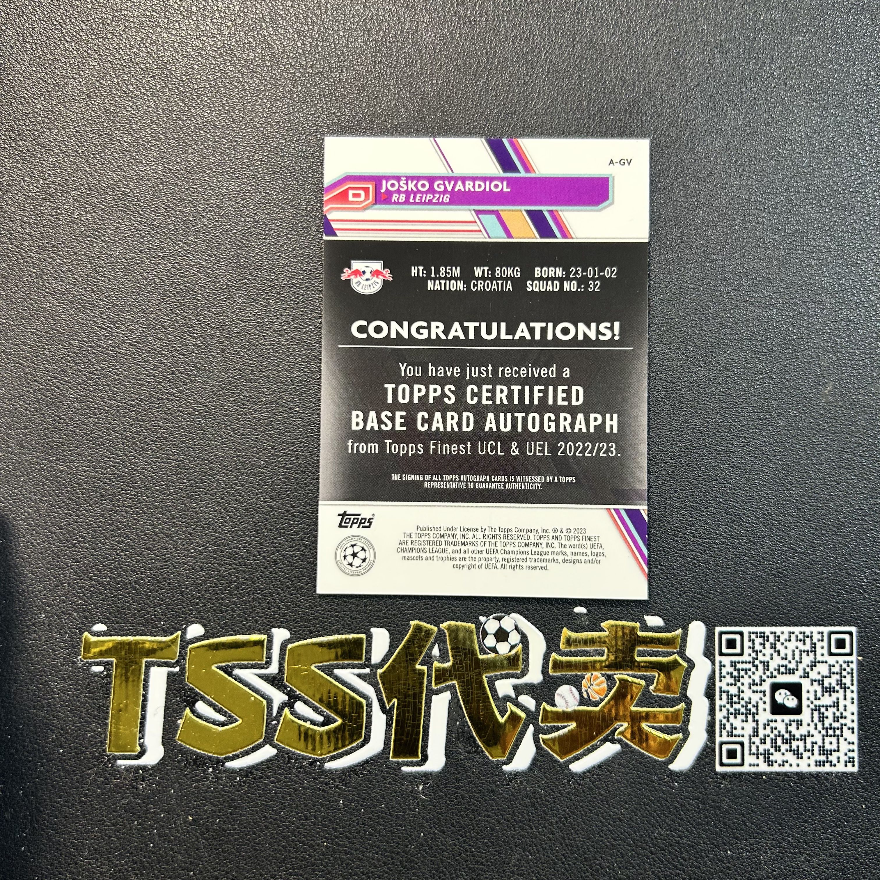 2022-23 Topps Finest 格瓦迪奥尔 Josko Gvardiol 欧冠 finest 莱比锡红牛 曼城 顶级后卫 银折 签字 JH4553 ZGK31-陳