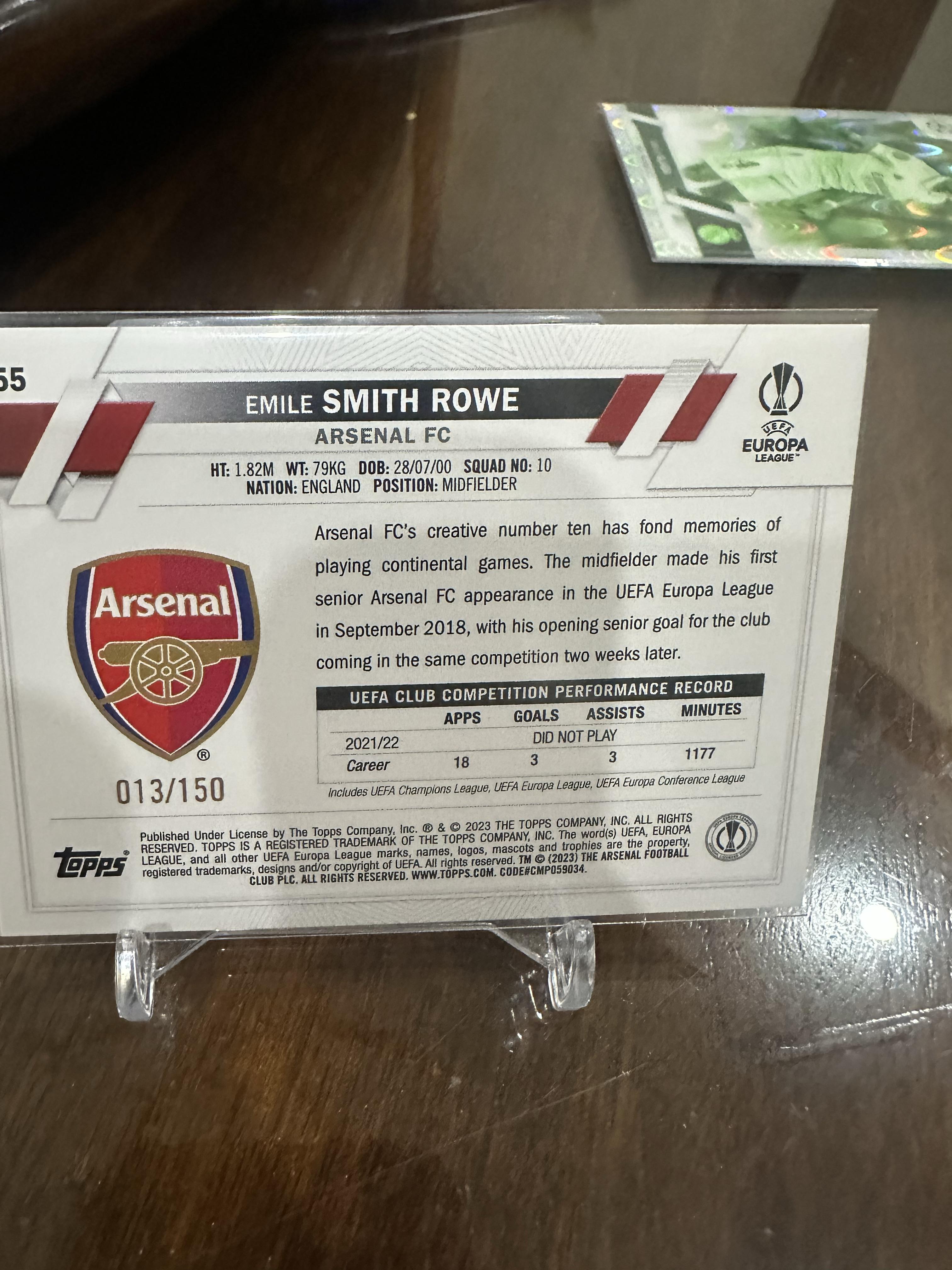 2023 Topps Chrome Emile Smith Rowe UCC 史密斯罗 S罗 阿森纳 富勒姆 英格兰🏴 欧冠 150编 黑白冰封折 折射 轻印如图 亚马尔
