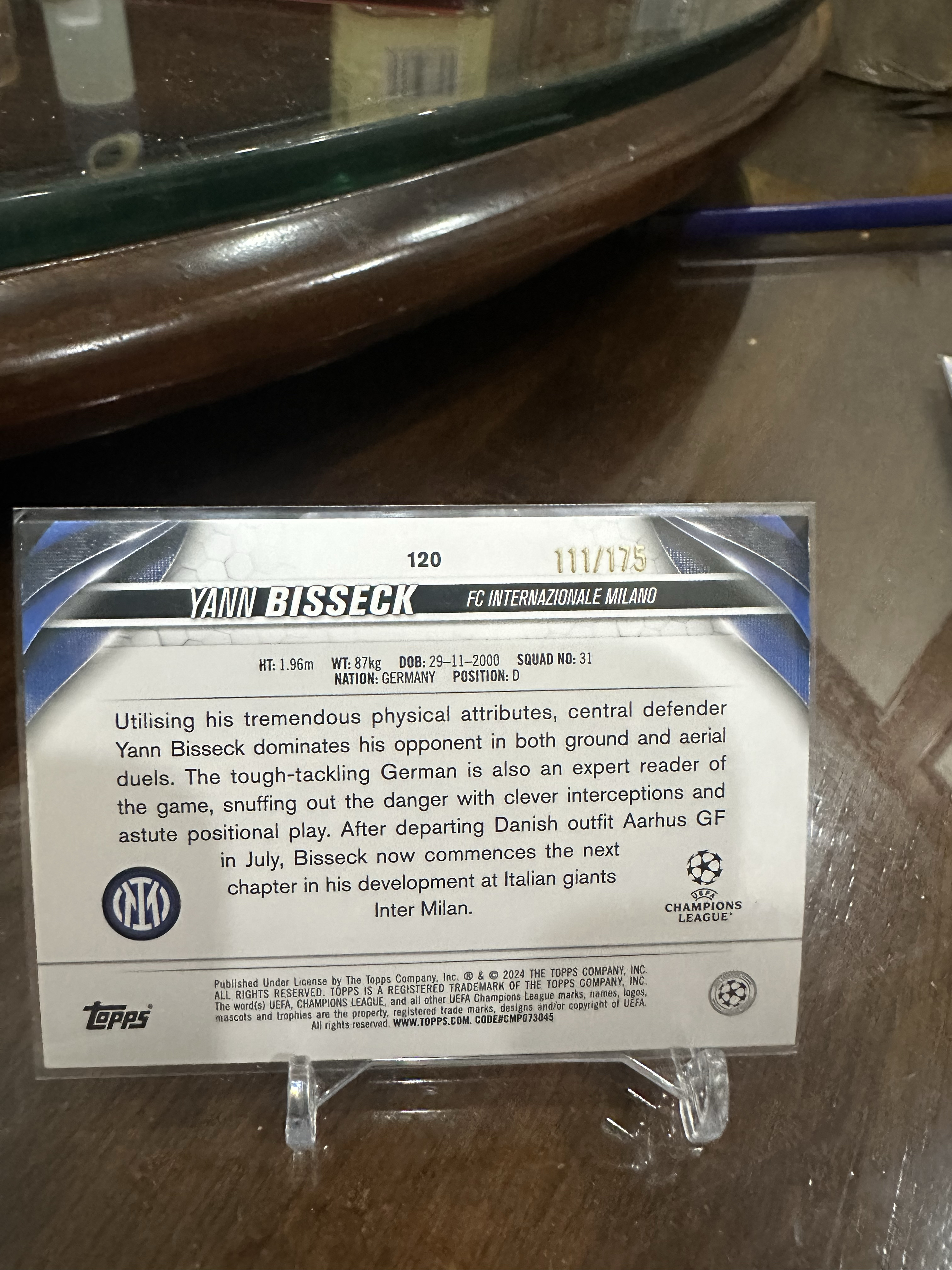 2024 Topps Chrome Yann Bisseck RC 扬 比塞克 国际米兰 111/175编 欧战 碧玉 蓝玉折 RC新秀 收藏必备 意大利🇮🇹 极具收藏价值 亚马尔